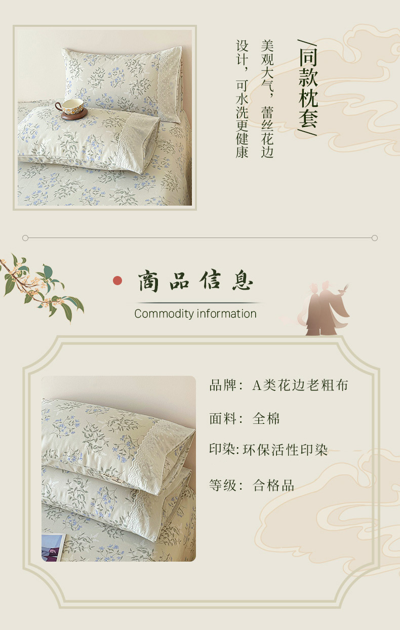 (总)春皖家纺 2026春夏新品老粗布花边款单枕套 枕套单件,花边-翠林音,花边-莱昂,花边-细川聚,花边-田园梦,花边-塞西,花边-琴南,花边-倩影米,花边-米娅,花边-香颂,花边-伊兰