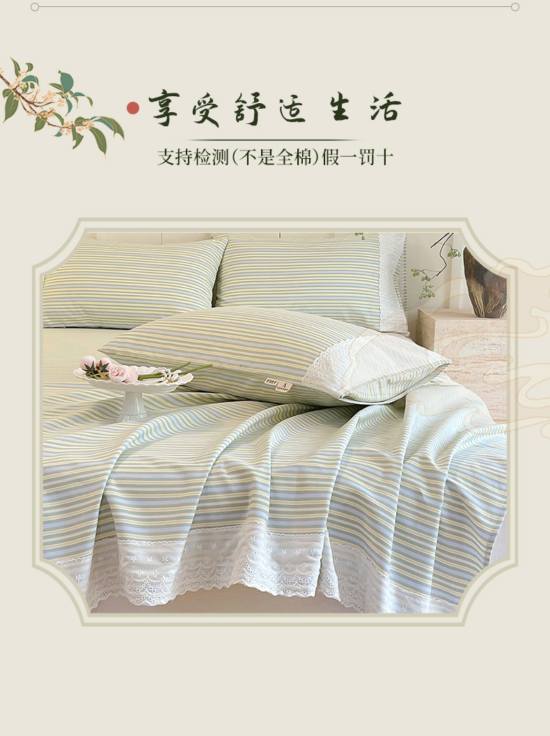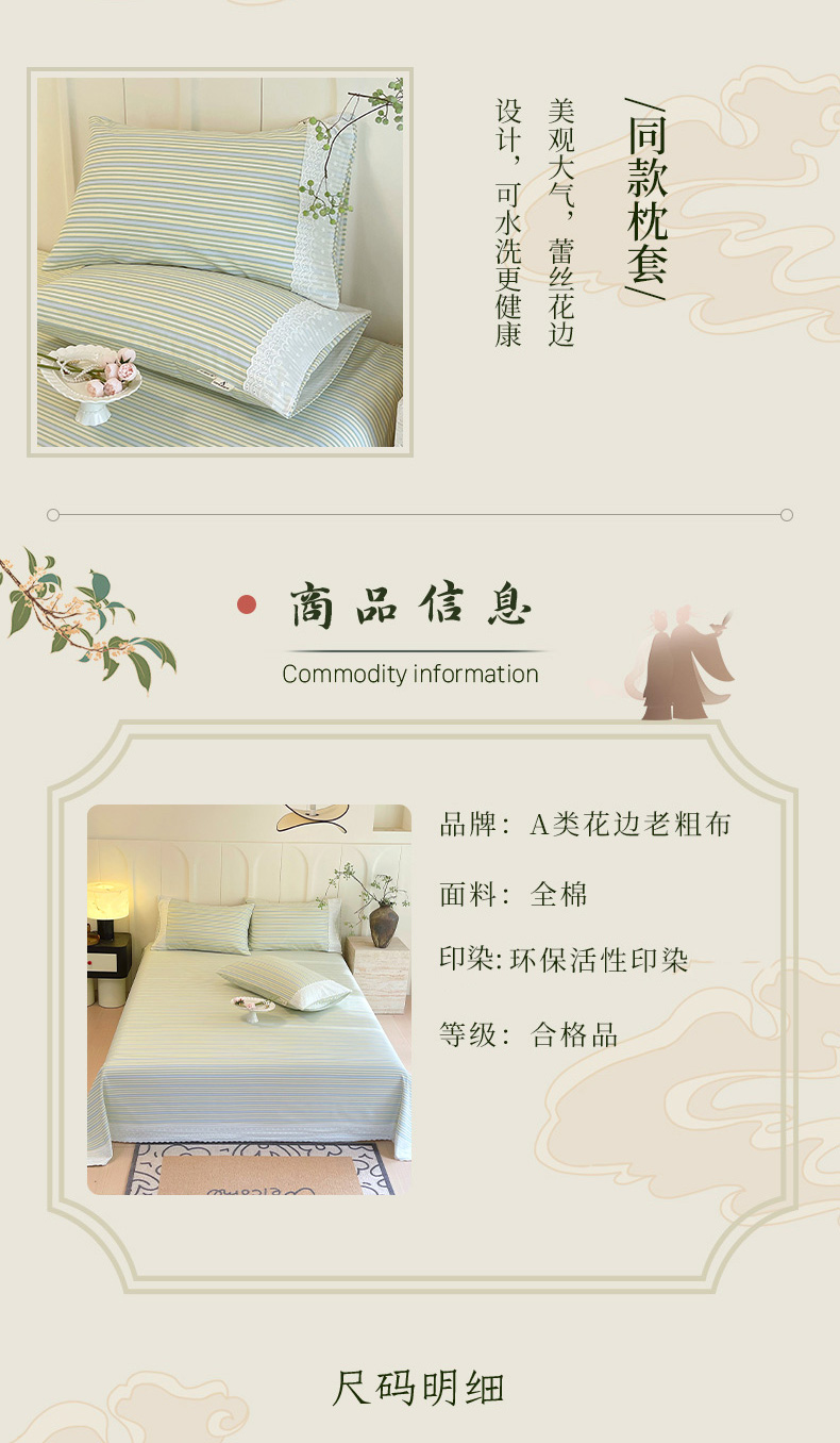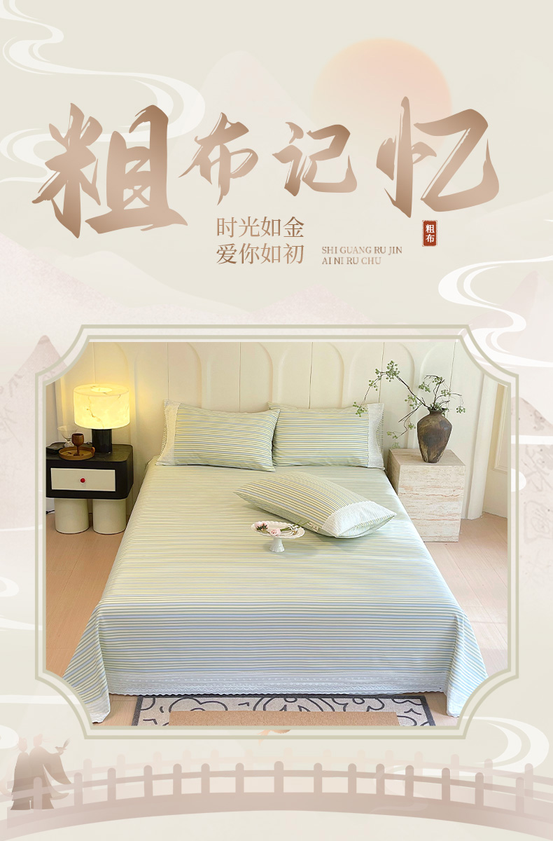 • 91家纺网 家纺一手货源 找家纺 春皖家纺 2026春夏新款老粗布花边款凉席席子单床单 床单单件 花边-琴南