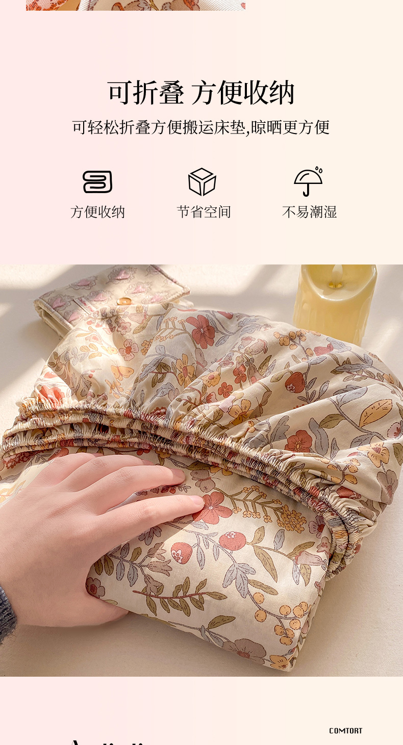 • 91家纺网 家纺一手货源 找家纺 花梦欣 2026新款全棉印花单品系列2花卉款-单床笠 京都花园