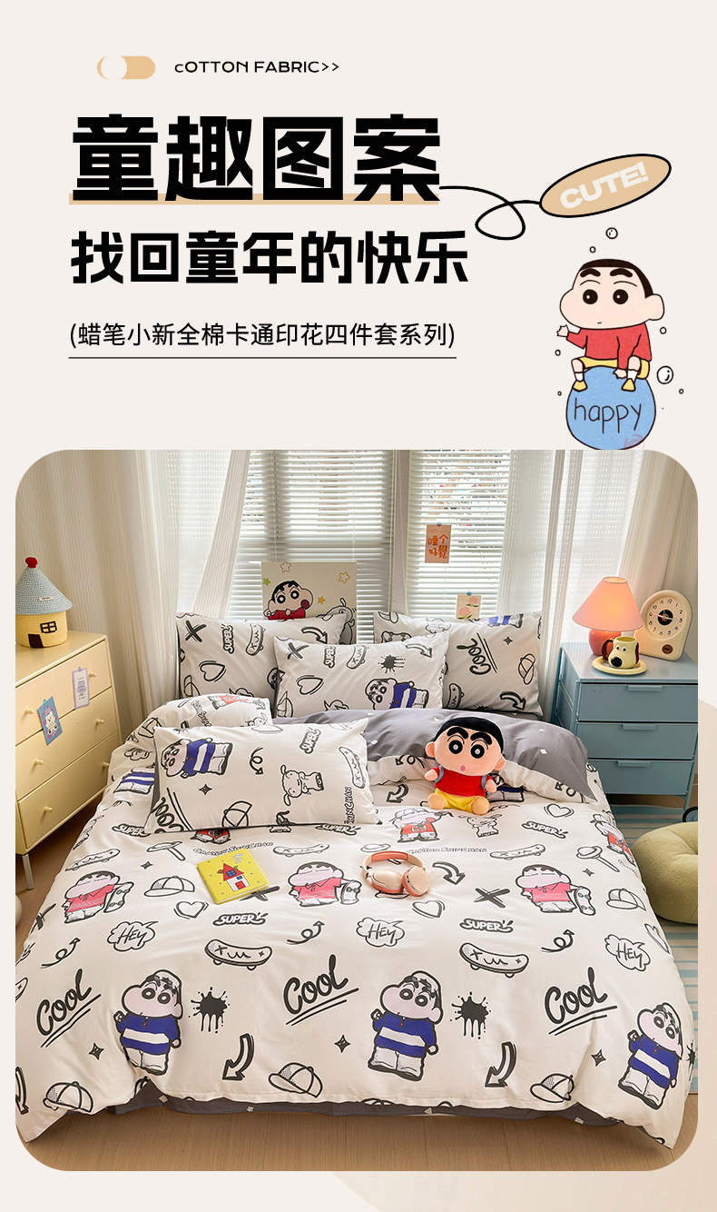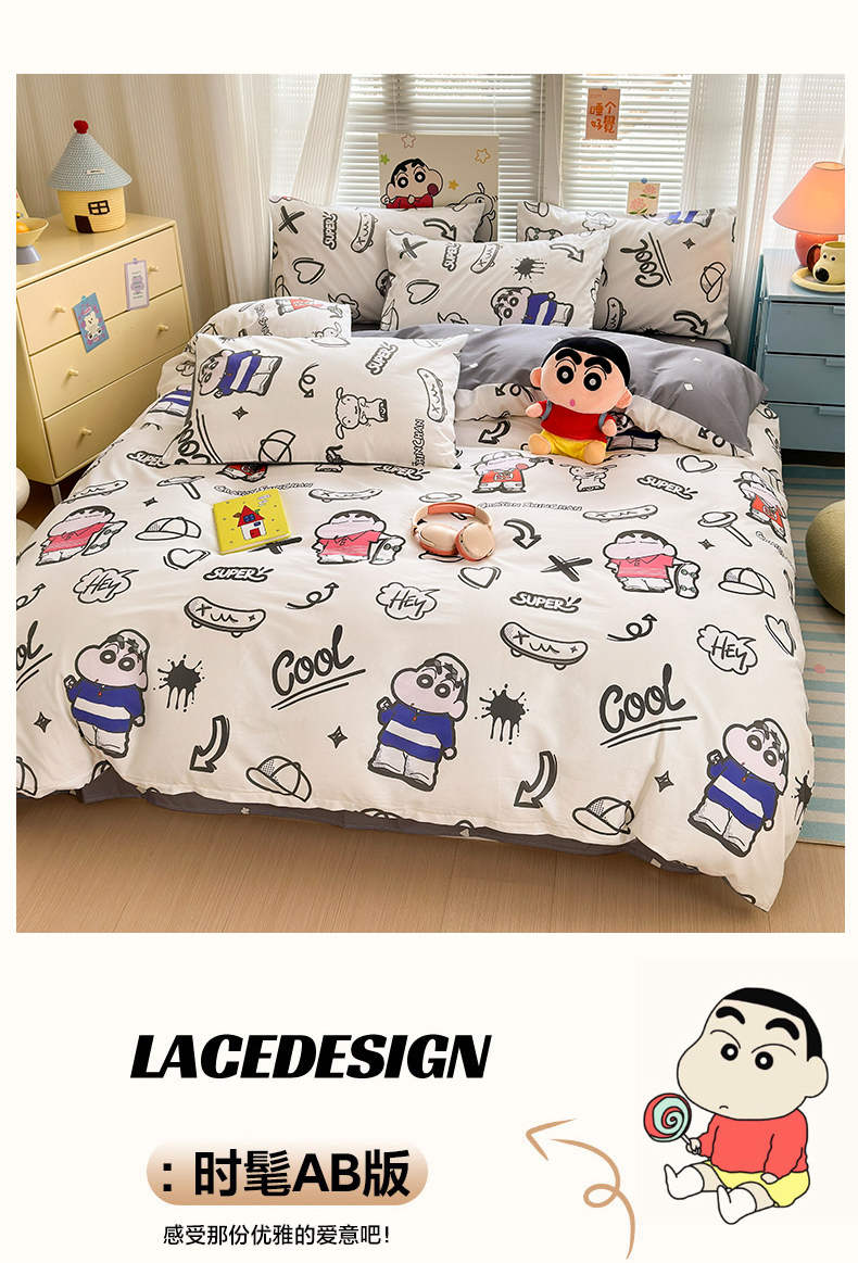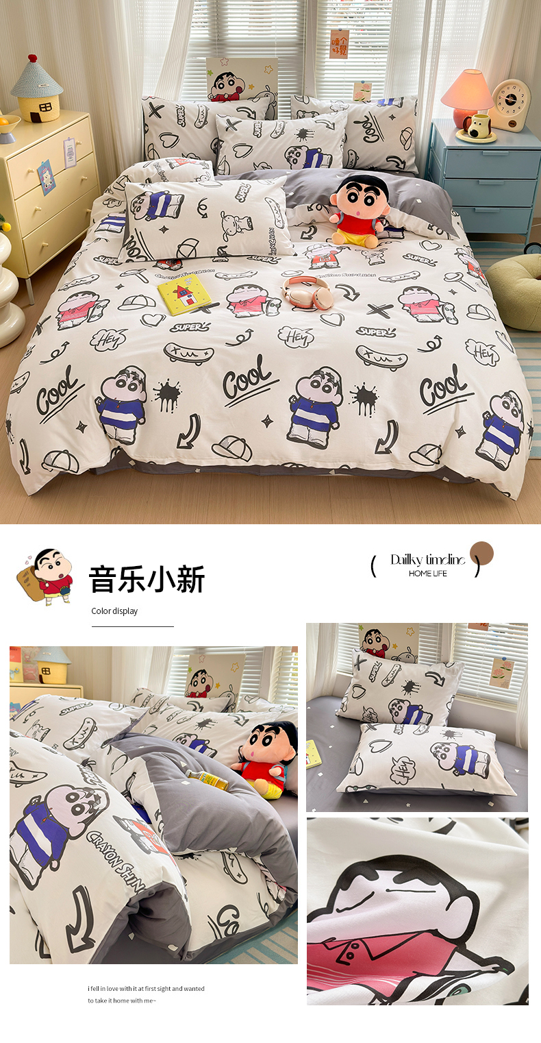 曼之夏 2026新款全棉卡通印花四件套系列-蜡笔小新 音乐小新