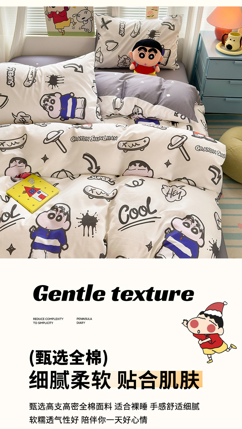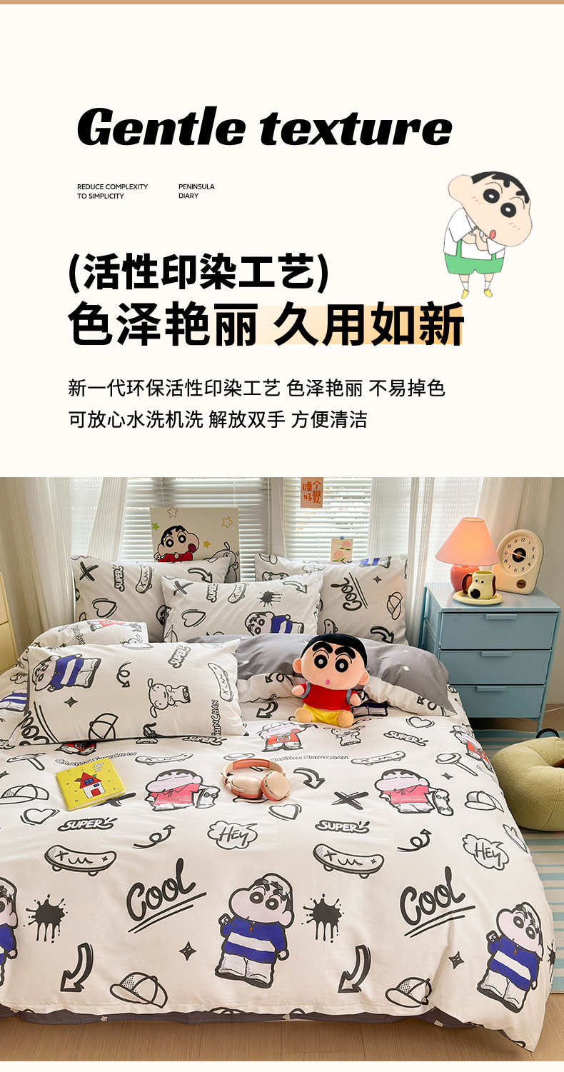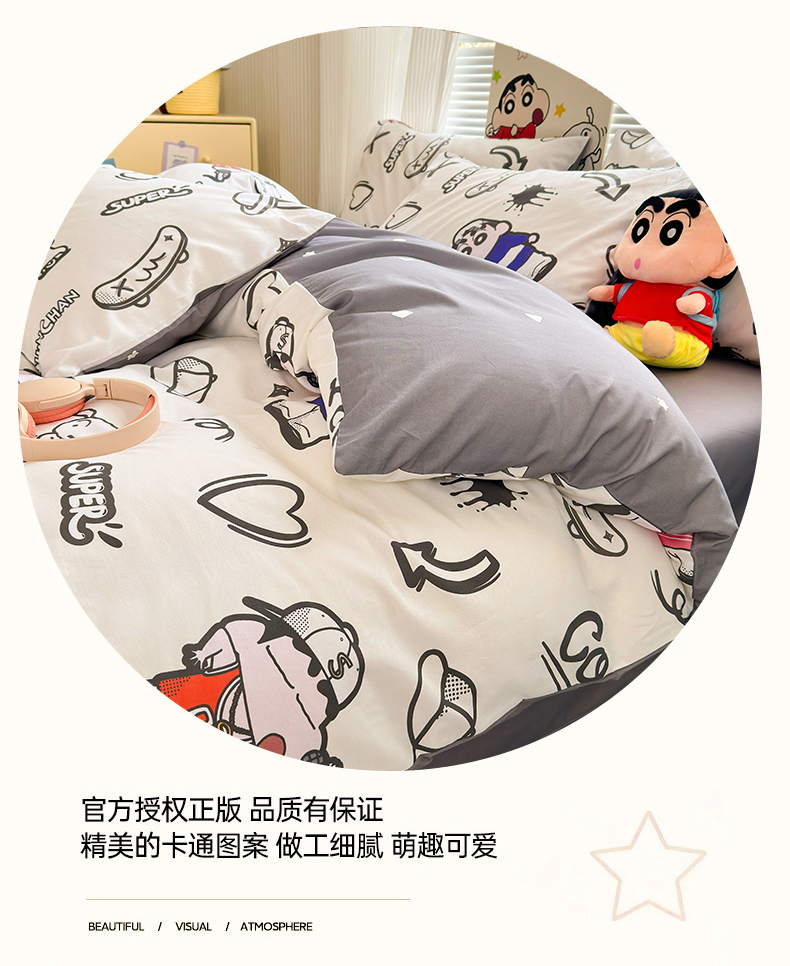 曼之夏 2026新款全棉卡通印花四件套系列-蜡笔小新 音乐小新