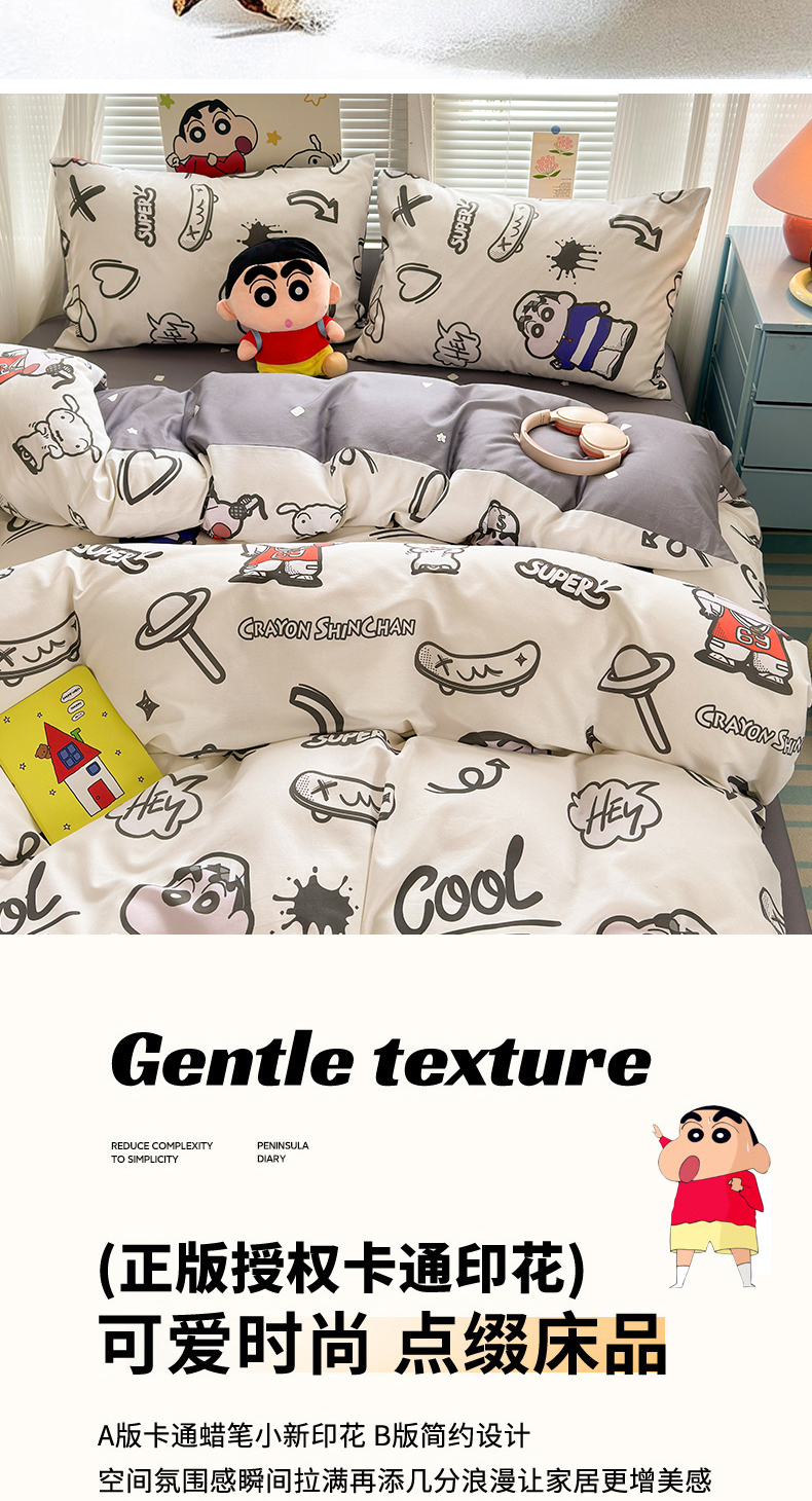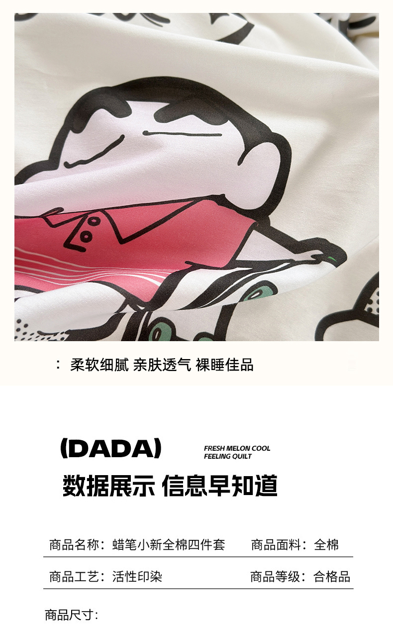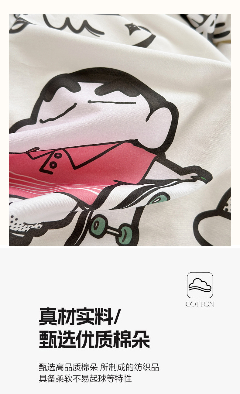 商品名称:曼之夏 2026新款全棉卡通印花四件套系列-蜡笔小新 音乐小新