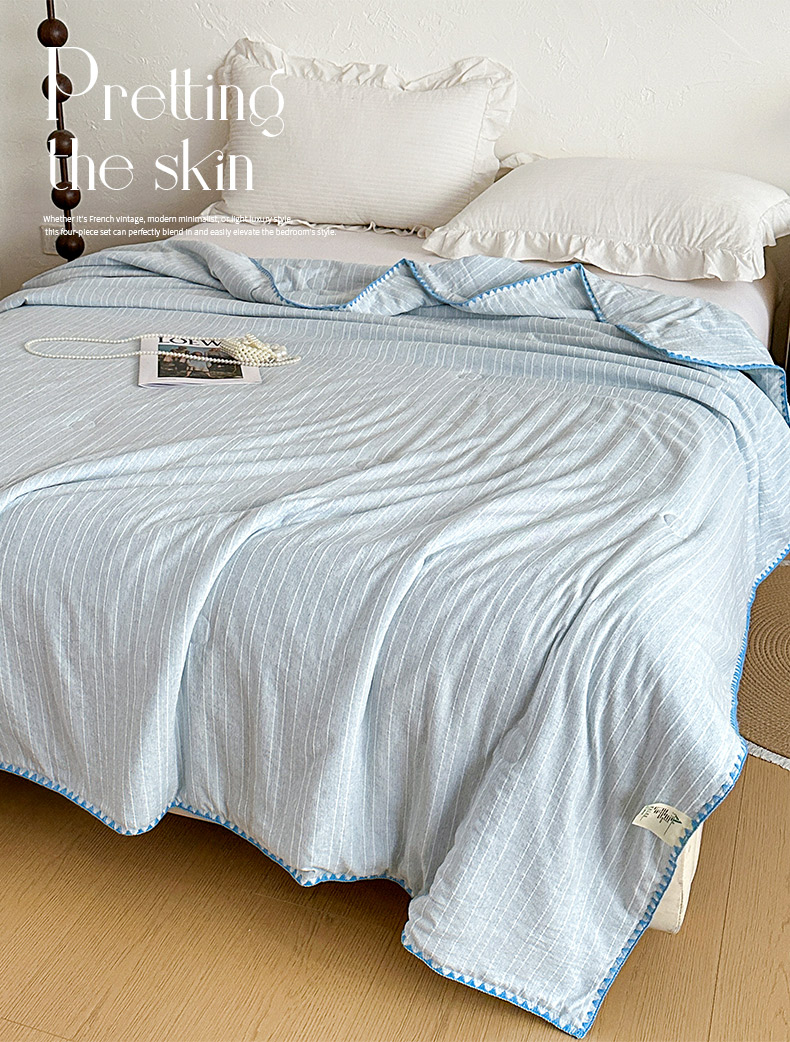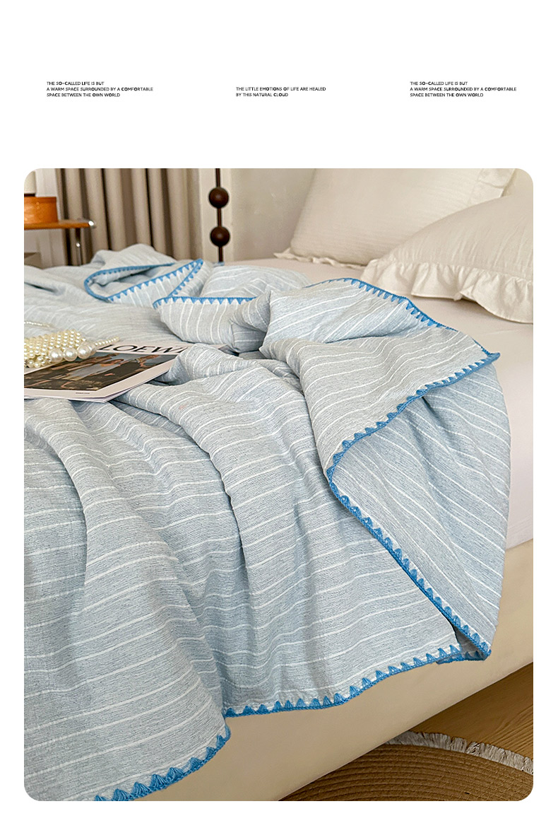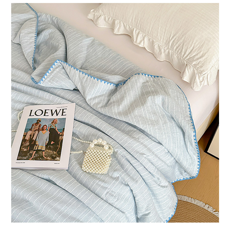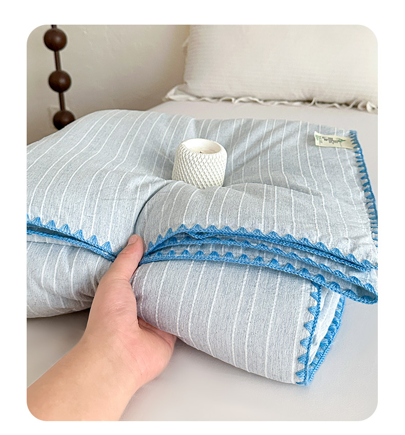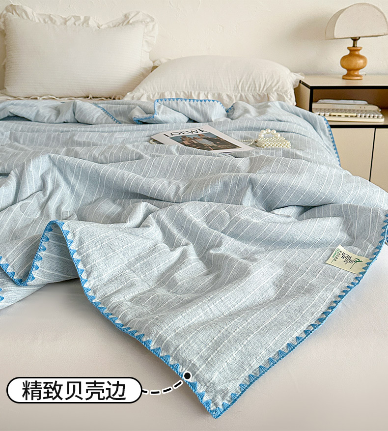 被子 > 夏被 > 鑫利来家纺 2026新款纯色无印风夏被简约素色法式麻夏凉被阳离子色织提花单人双人学生夏凉被 青禾-雾蓝