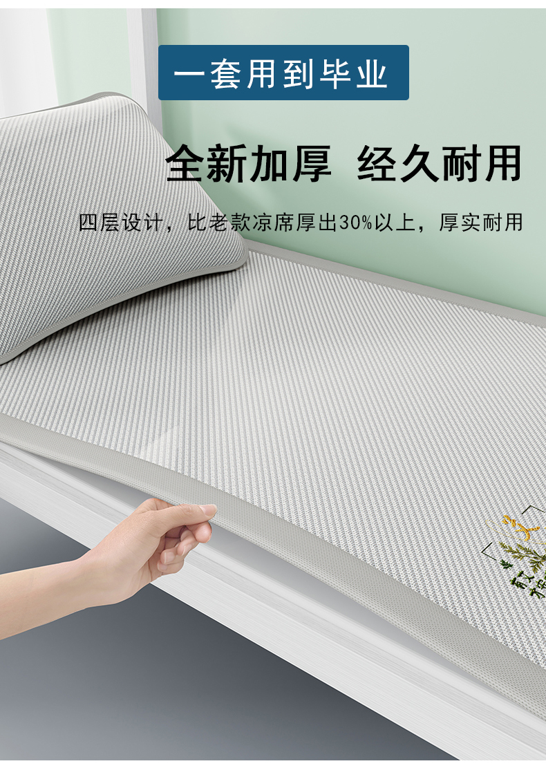 当前位置: 91家纺网 > 商品网购 > 床上用品 > 凉席 > 凉席套件 > 家品罗兰 2026新款夏季A类艾草碳光凉席三明治冰丝凉席家用冰丝席可机洗学生宿舍上下铺空调软席三件套-学生床 艾草-灰