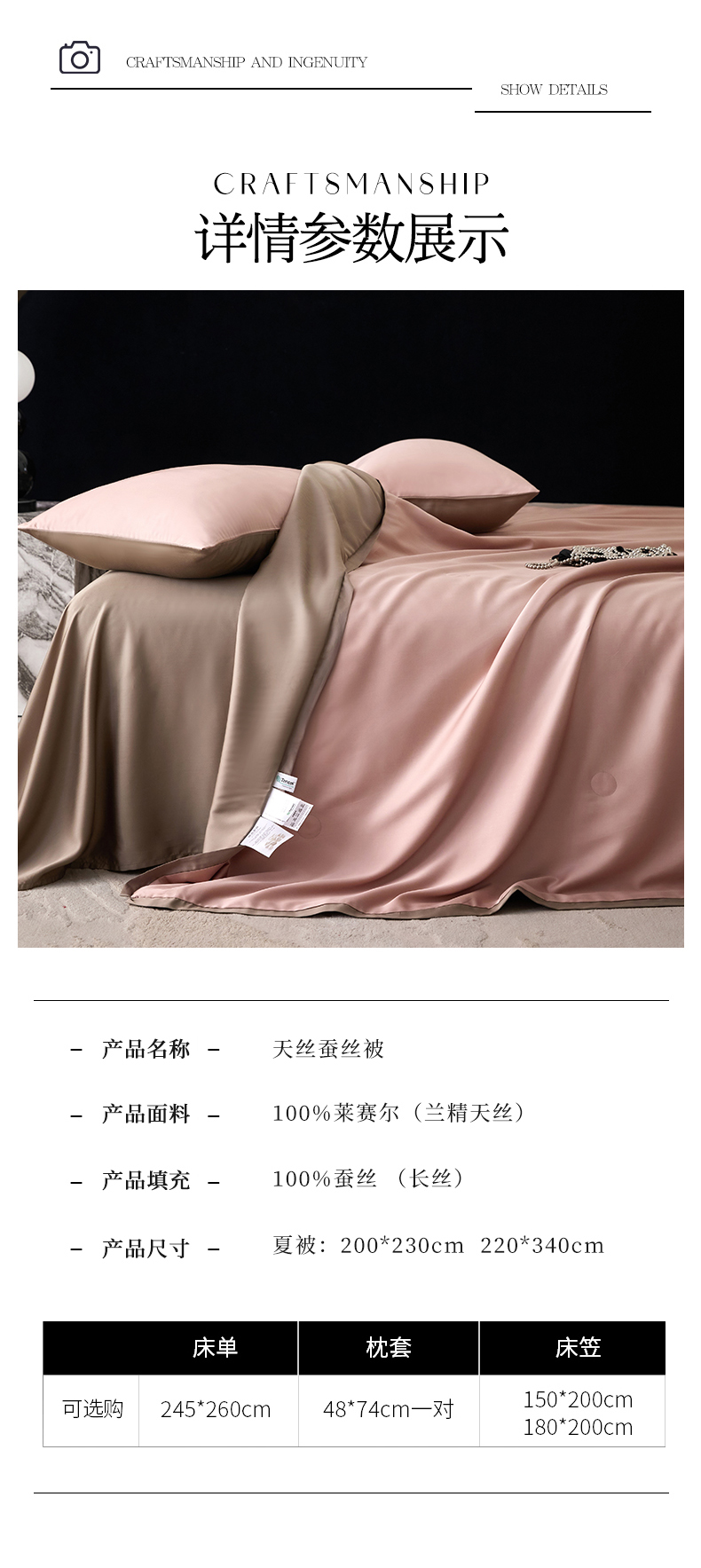 商品名称:A+爱家(纪梵茜) 2026新款兰精天丝夏凉被100%蚕丝被莱赛尔天丝蚕丝空调被芯蚕丝夏被 蚕丝豆沙