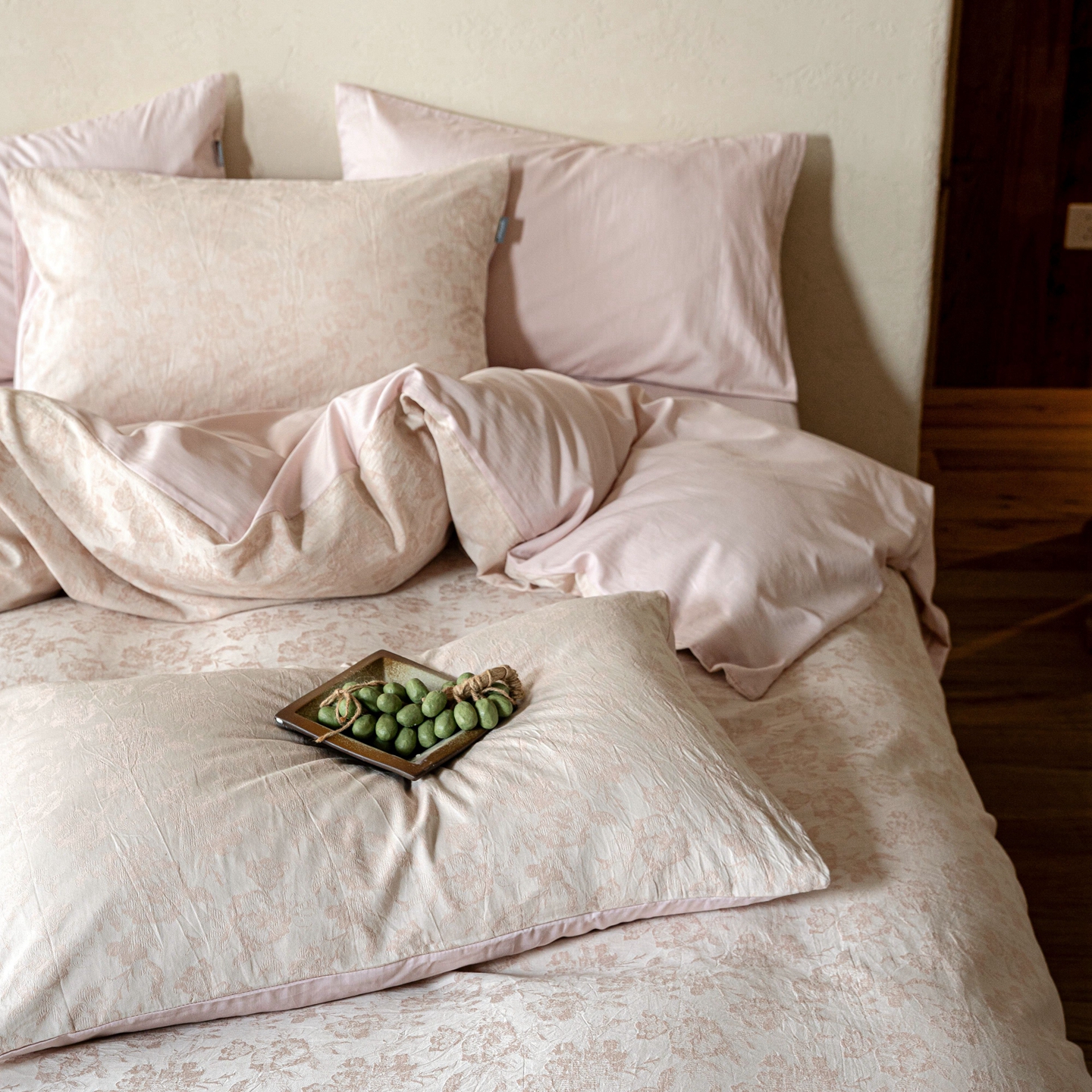当前位置: 91家纺网 > 商品网购 > 床品套件 > 四件套 > 全棉普通四件套 > 时光里 2026新款全棉纯棉60支色织水洗提花四件套 小杏芙