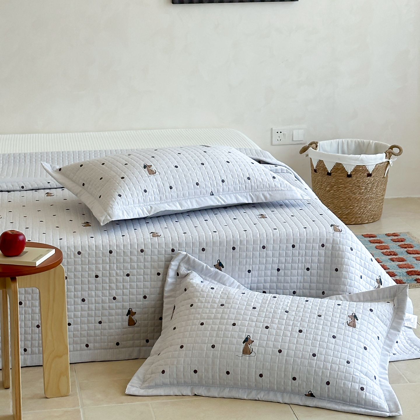 (总)床盖工厂店 2026新款全棉卡通纱布床盖三件套,斑点象 粉,斑点象 兰,嘟比熊,萌星 黄,趣梦鹅 黄,趣梦鹅 绿