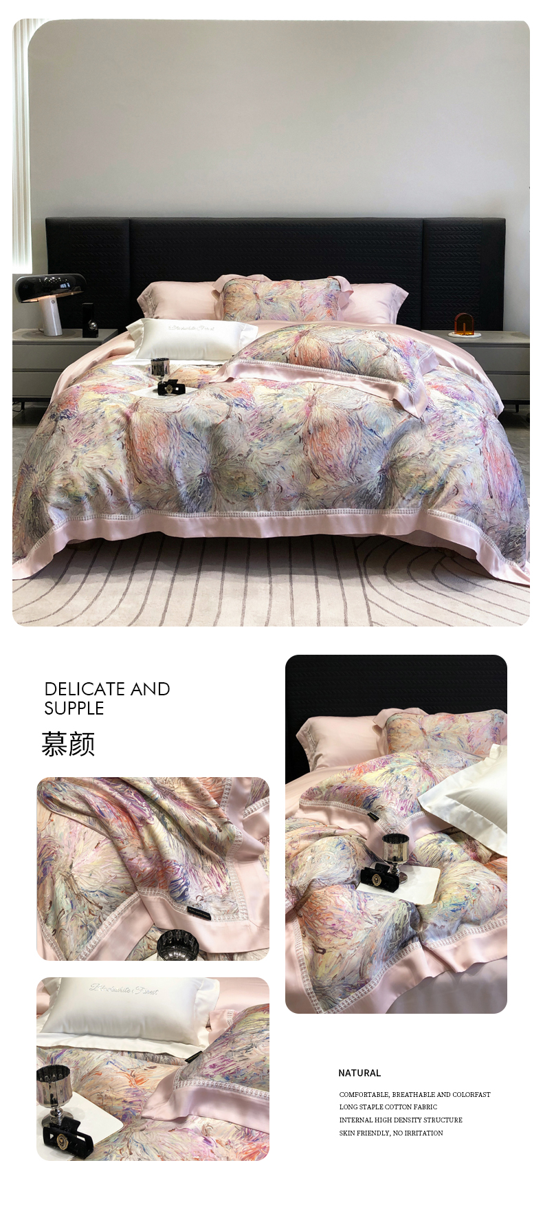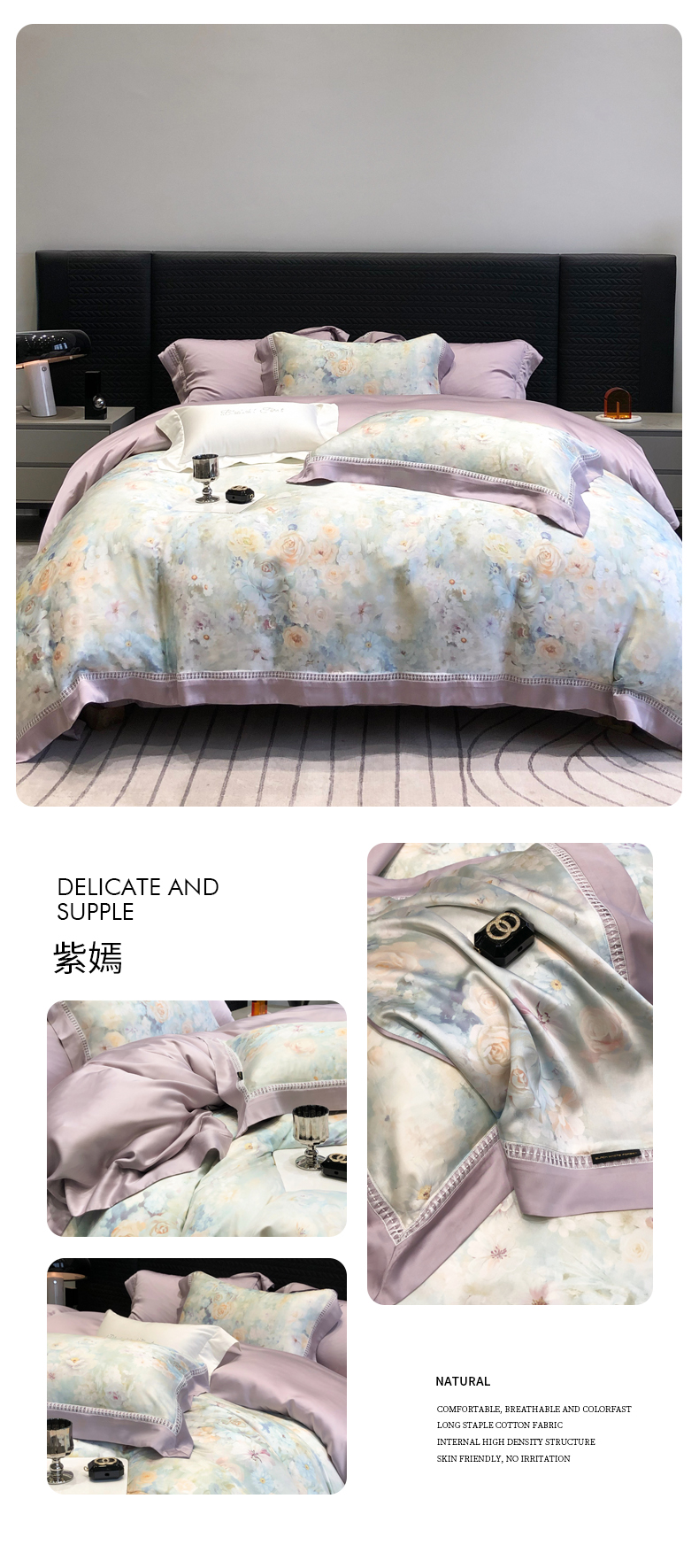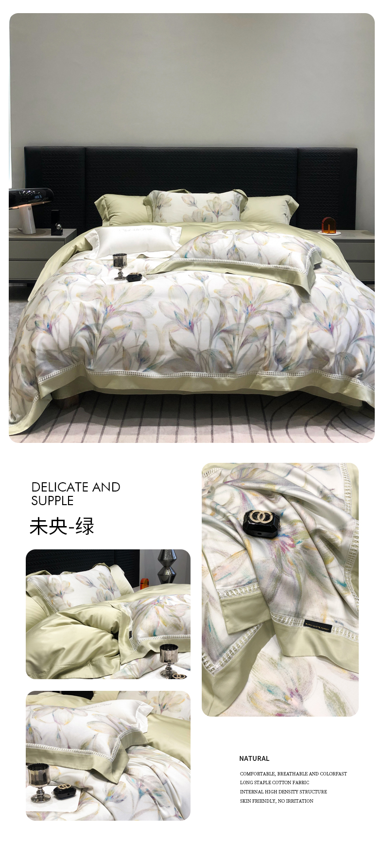 黑白森林2024款 60S支兰精天丝数码印花四件套,朝颜,木槿,玉茗,春浅,京墨,半夏,丹若,繁缕,青黛,德琳-粉,德琳-绿,蒂娜-灰,蒂娜-紫,慧莉-粉,慧莉-绿,欧瑞,夏夜