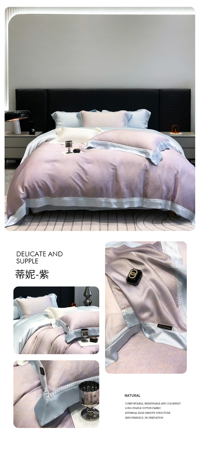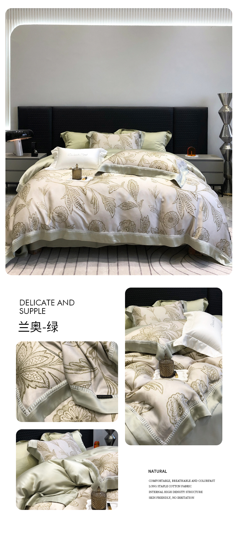 黑白森林2024款 100S支天丝棉提花四件套天丝全棉,芙拉维-裸灰,芙拉维-秋绿,圣露安-雾粉,圣露安-香槟,西西里-奶白,西西里-柔粉
