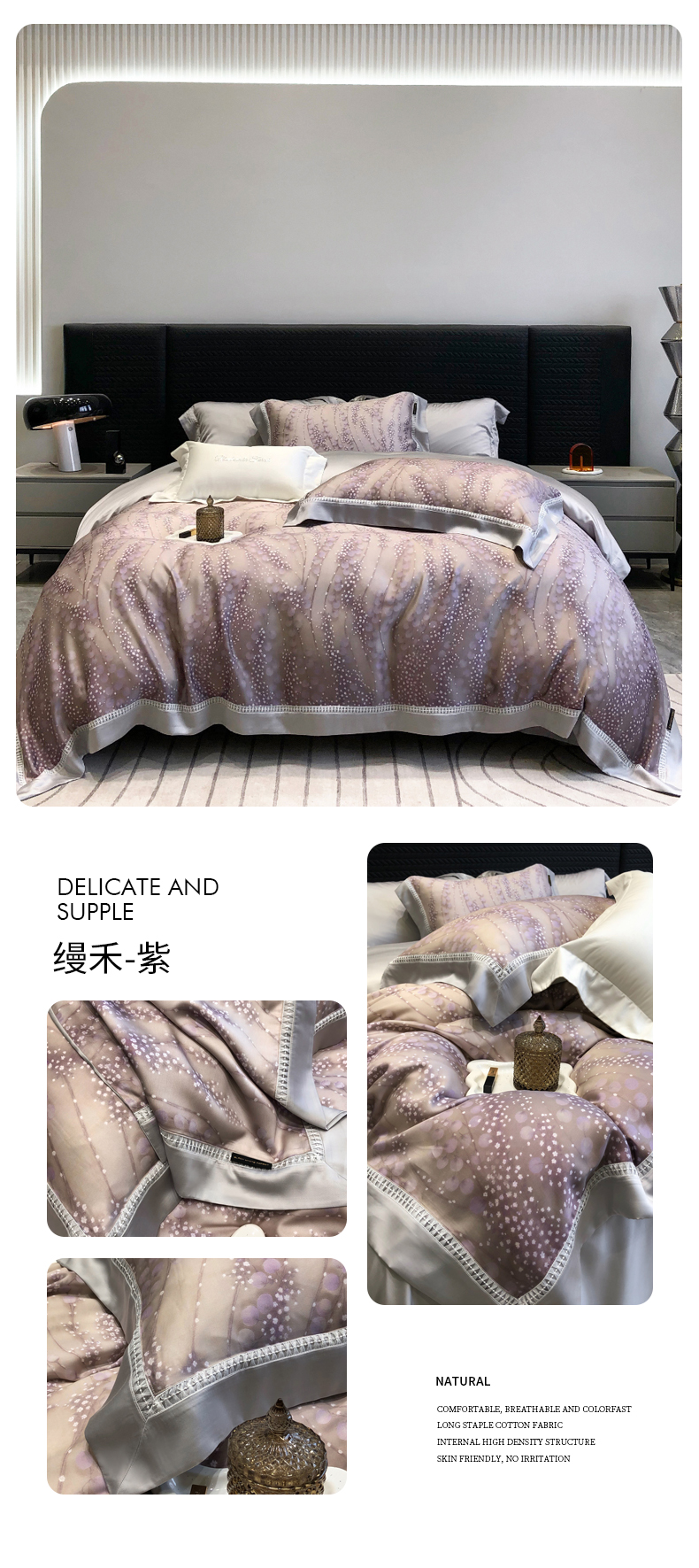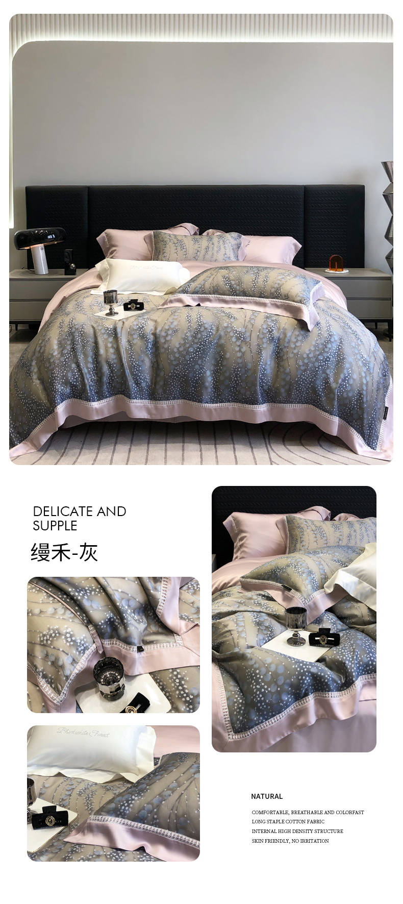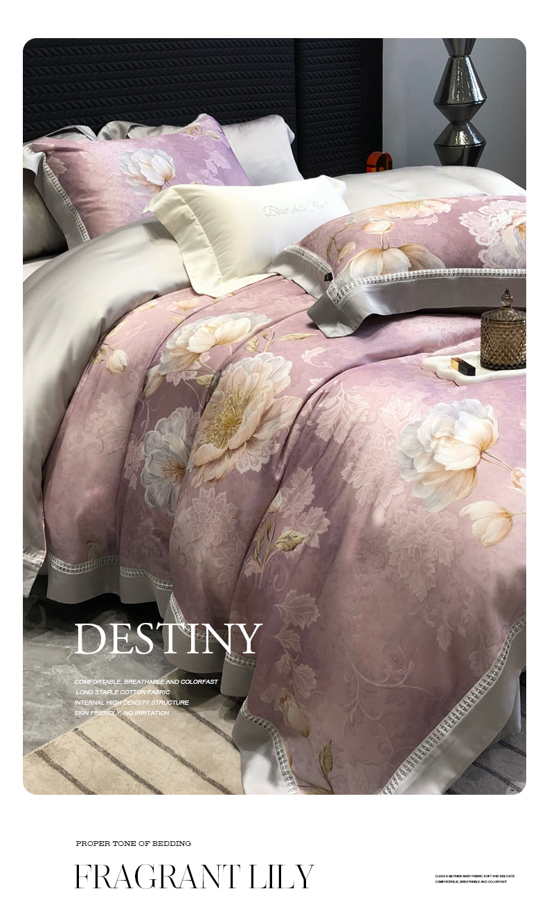 (总)黑白森林 2026新款天丝印花夏被四件套系列,邂逅-粉,邂逅-灰,云馥-粉,云馥-紫,紫嫣