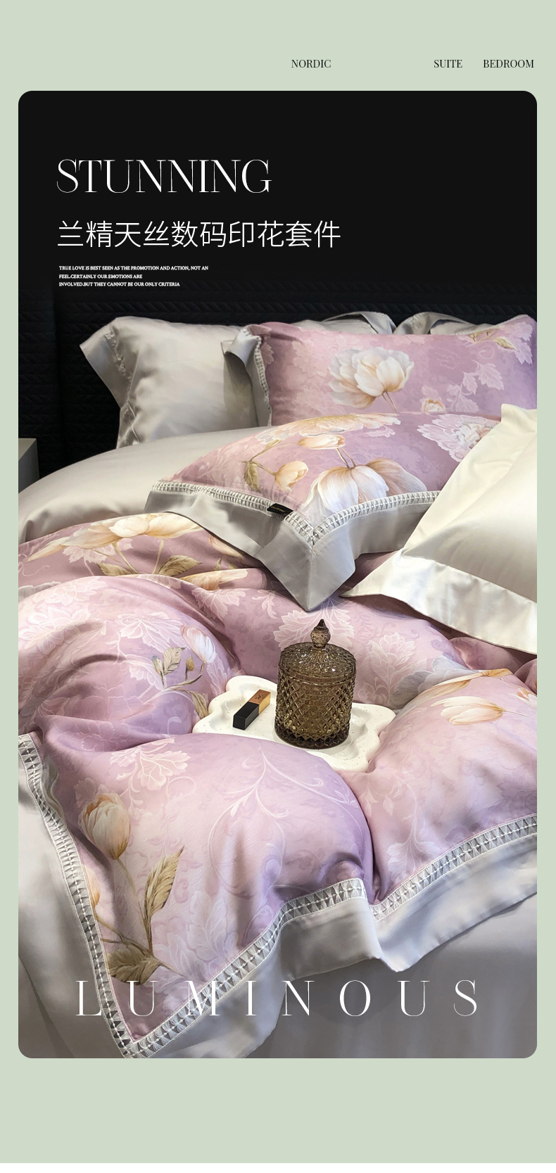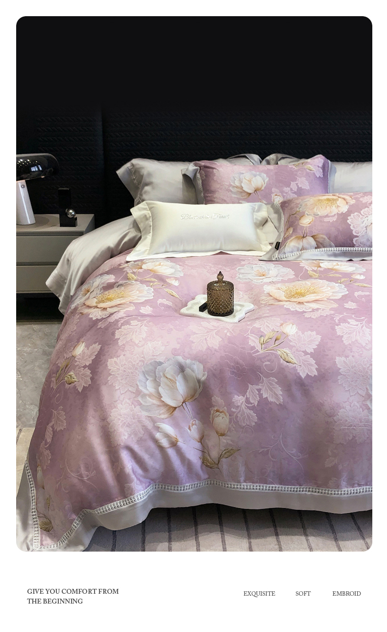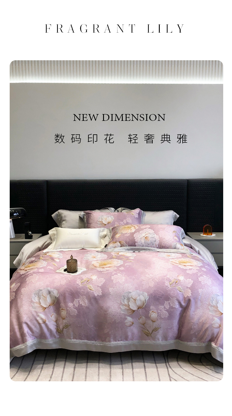 (总)黑白森林 2026新款轻奢天丝印花四件套,未央-绿,未央-紫,邂逅-粉,邂逅-灰,云馥-粉,云馥-紫