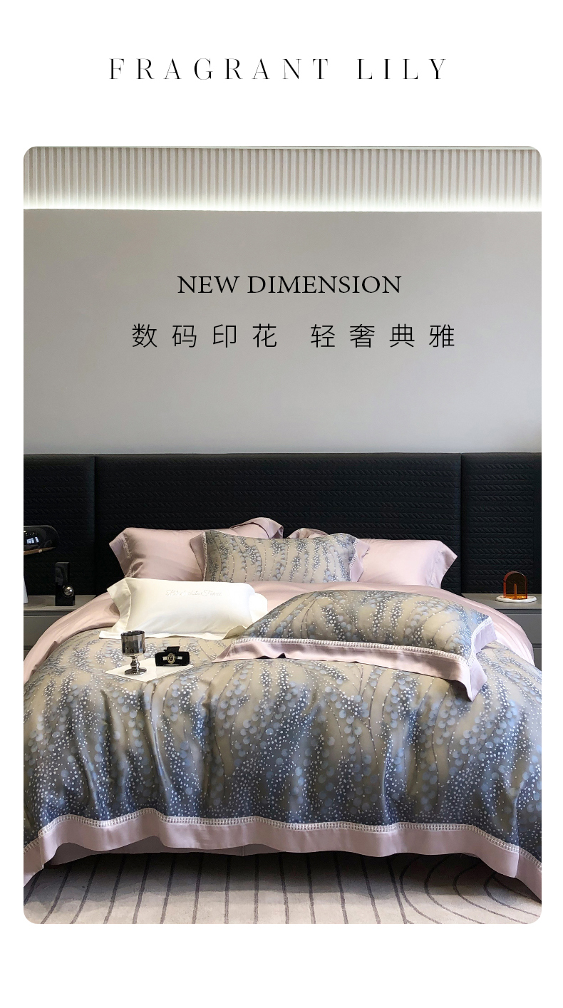 黑白森林2024款 50X50S高支天丝棉数码印花四件套天丝全棉,格伦黄,格伦绿,若瑶灰,羽笛蓝