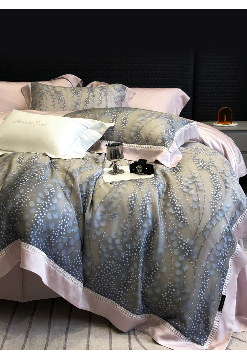 黑白森林 2026新款轻奢天丝印花四件套 缦禾-灰