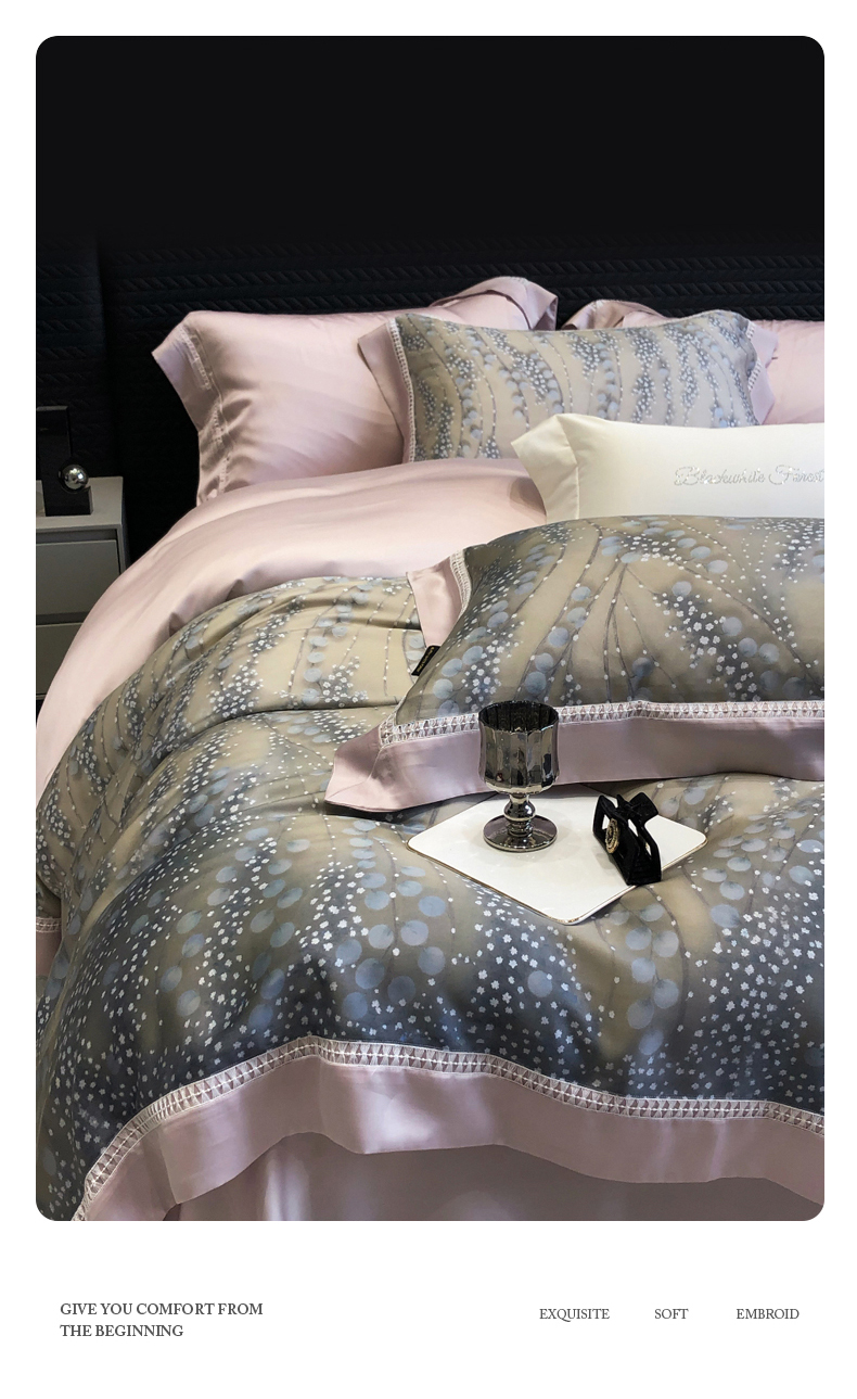 (总)黑白森林2024款 80X80S高支天丝棉四件套镂空蕾丝花边天丝全棉,尚美-晨夕粉,尚美-古象白,尚美-青砂绿,尚美-银雪灰