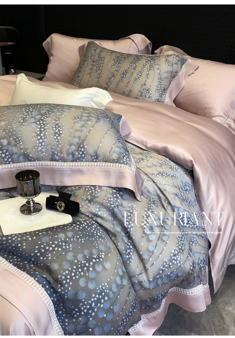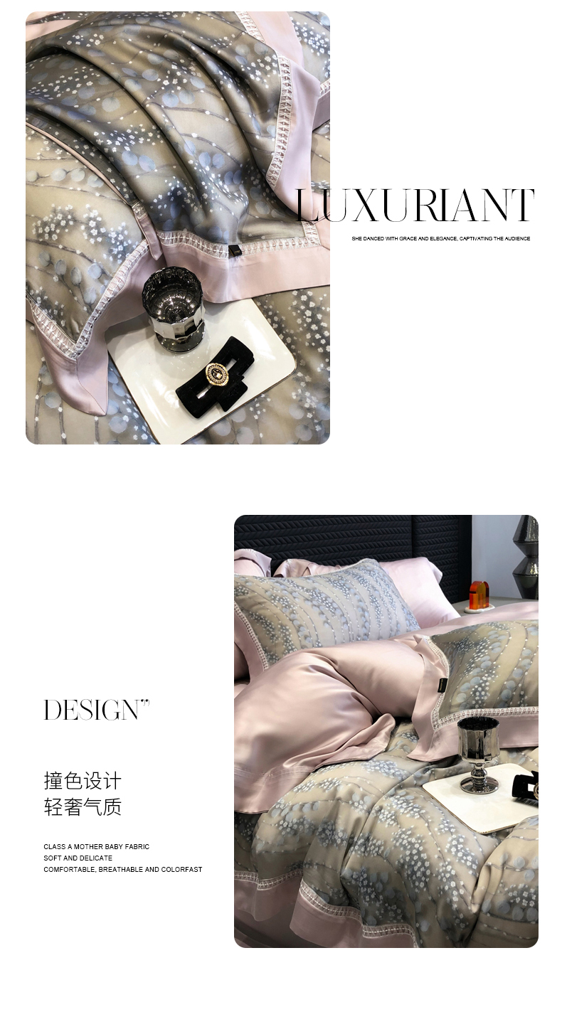 (总)黑白森林 2026新款天丝印花夏被四件套系列,邂逅-粉,邂逅-灰,云馥-粉,云馥-紫,紫嫣