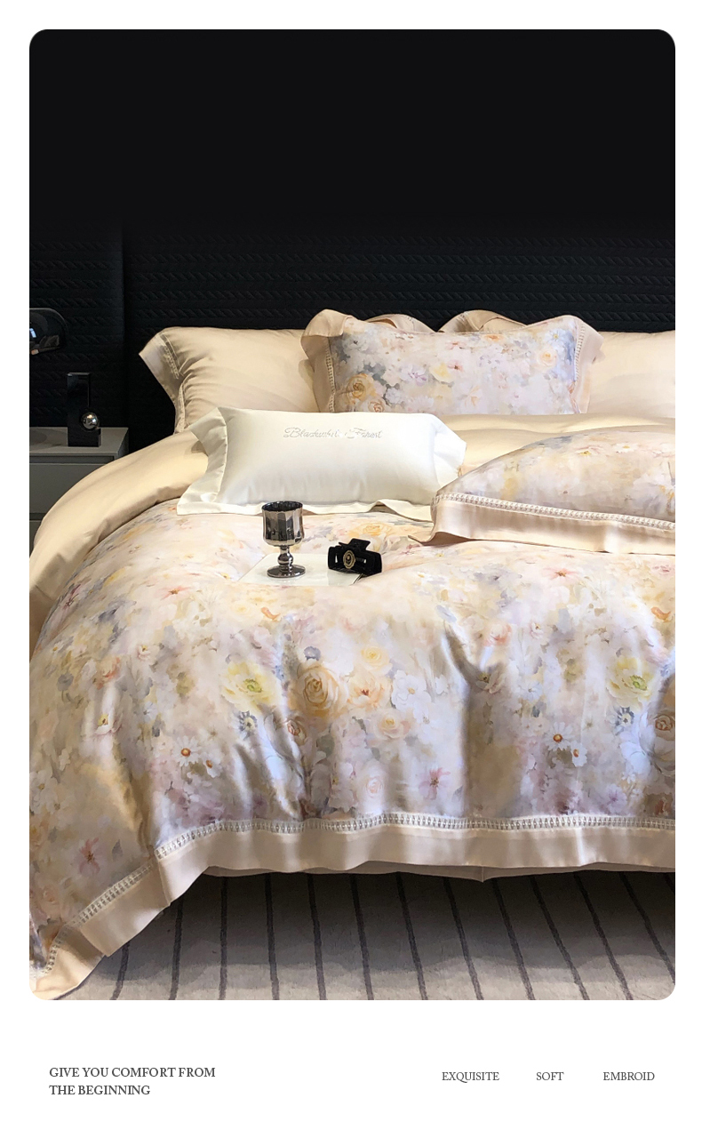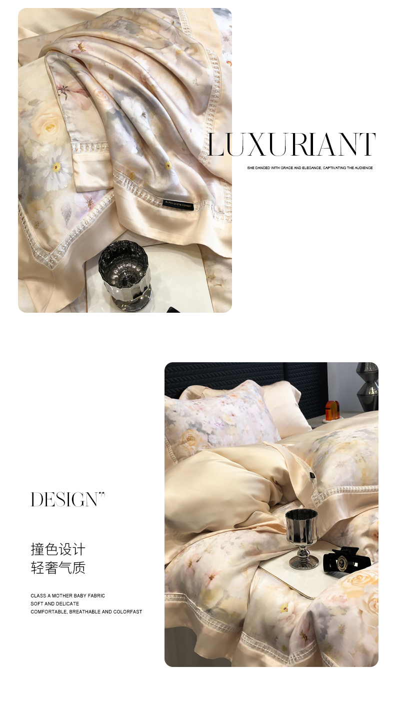 黑白森林 2026新款轻奢天丝印花四件套 如愿