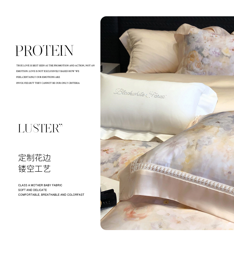 商品名称:黑白森林 2026新款轻奢天丝印花四件套 如愿