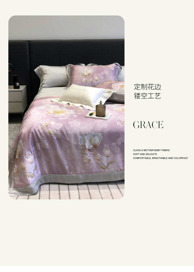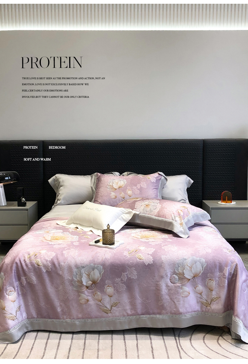 当前位置: 91家纺网 > 商品网购 > 床品套件 > 四件套 > 夏被四件套 > 黑白森林 2026新款天丝印花夏被四件套系列 菡蕾-紫