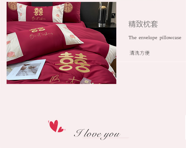 商品名称:甜咪咪婚庆 2026新款长绒棉全棉绣花结婚婚庆四件套多件套床单款 结婚啦