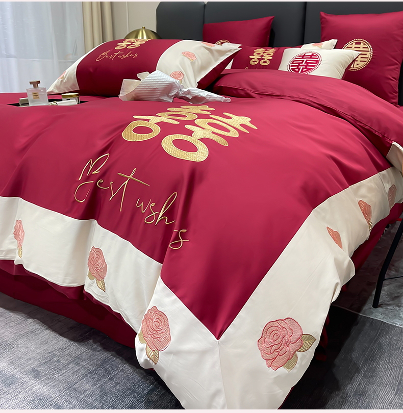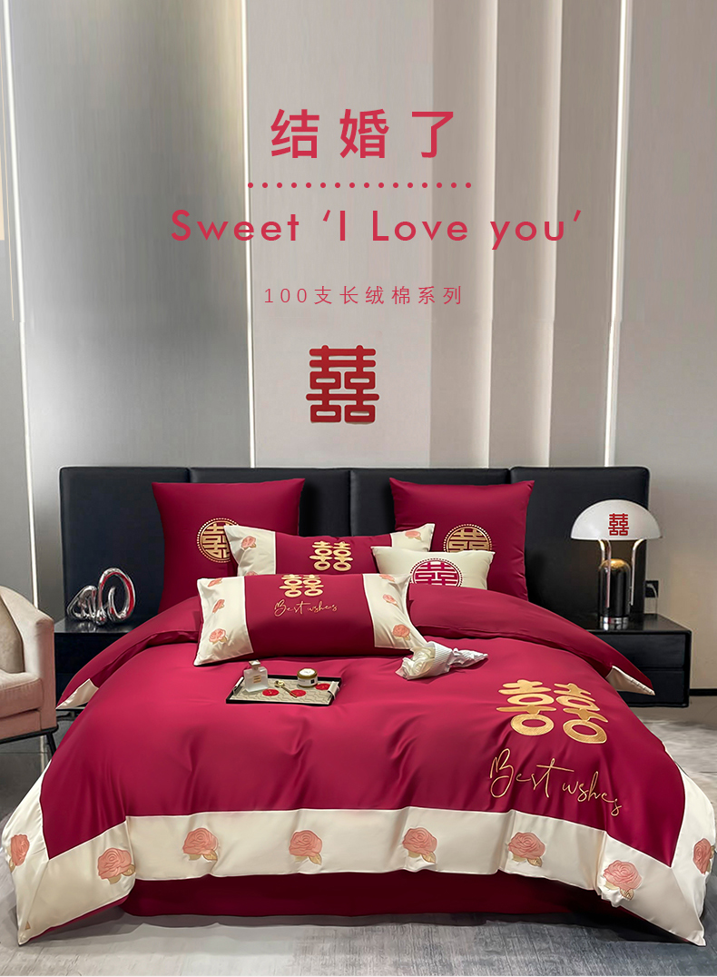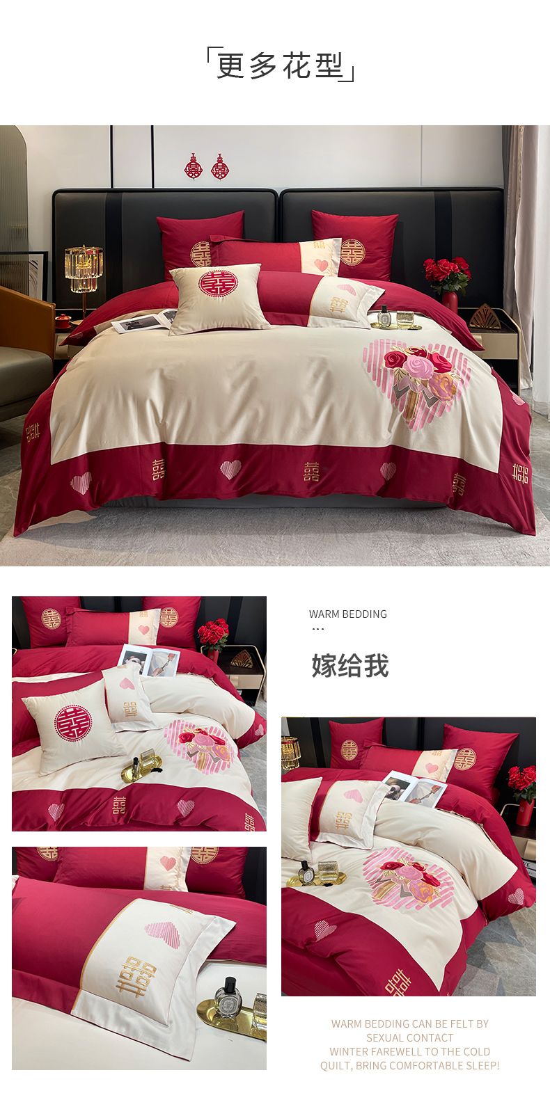 (总)甜咪咪婚庆 2025新款50支长绒棉全棉婚庆床单床盖四件套多件套刺绣工艺,洛可可,爱恋小熊,爱意久久,多子多福,花田喜事,节节高升,克拉恋人,浪漫情怀,怦然心动红,怦然心动玉,甜心玫瑰,温莎公主,伊甸园,醉红妆