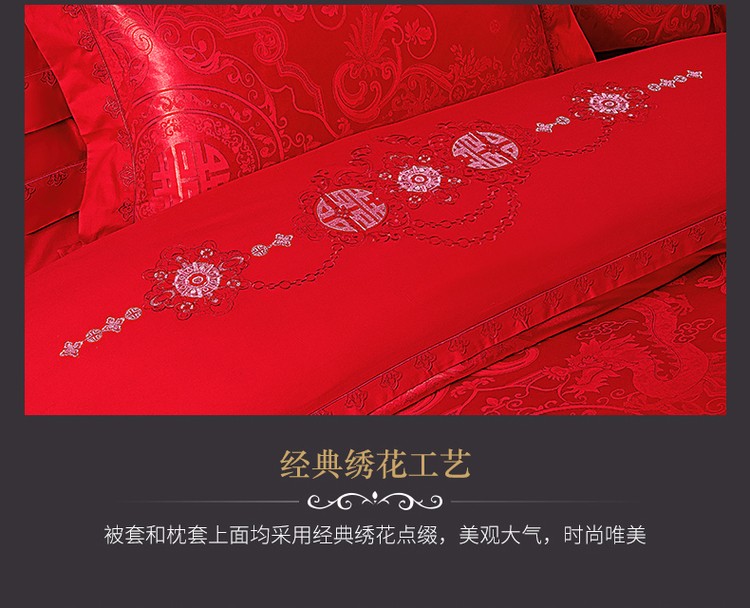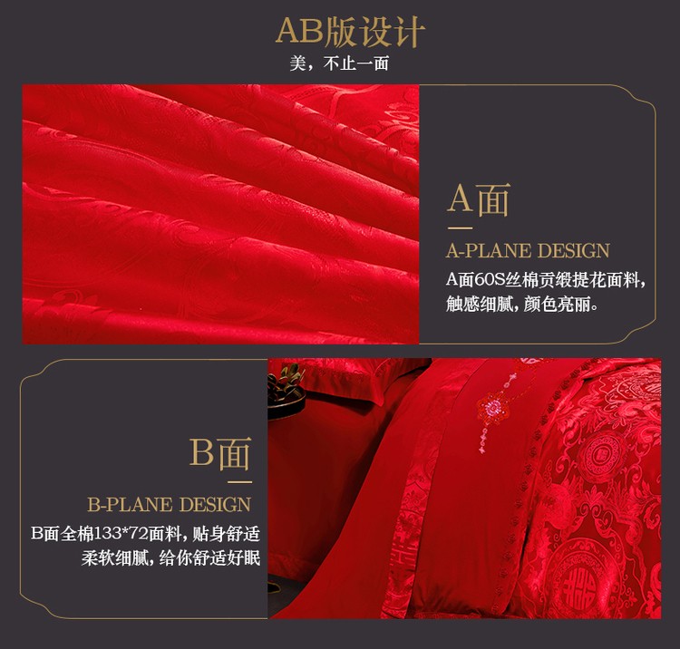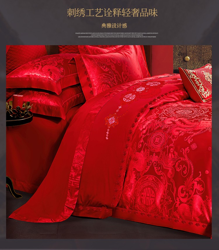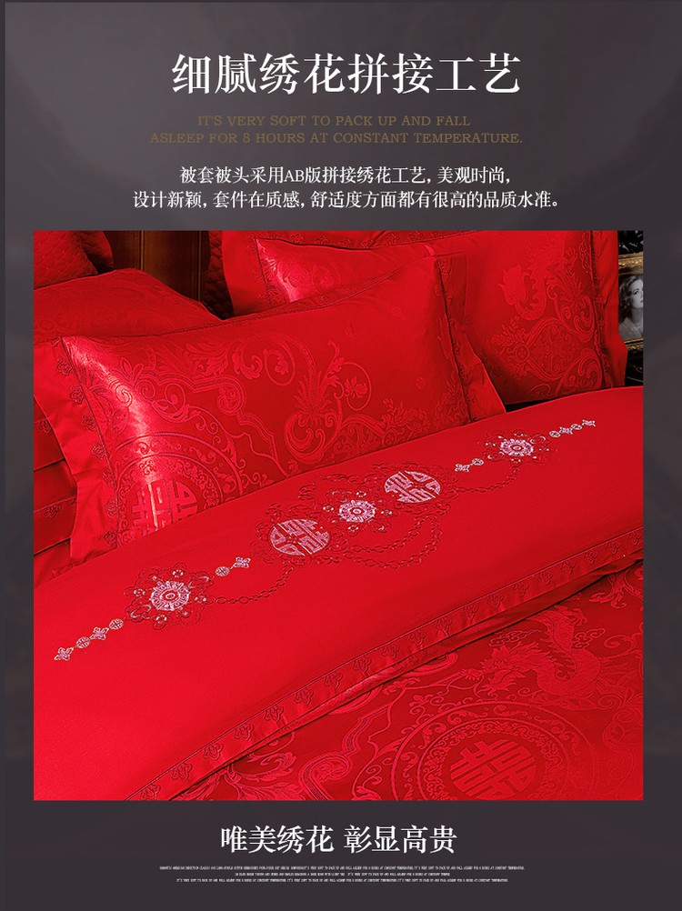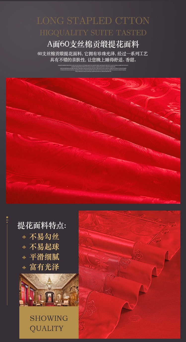 柔觉家纺 天丝刺绣贡缎提花全棉四件套,雅普诺-红灰