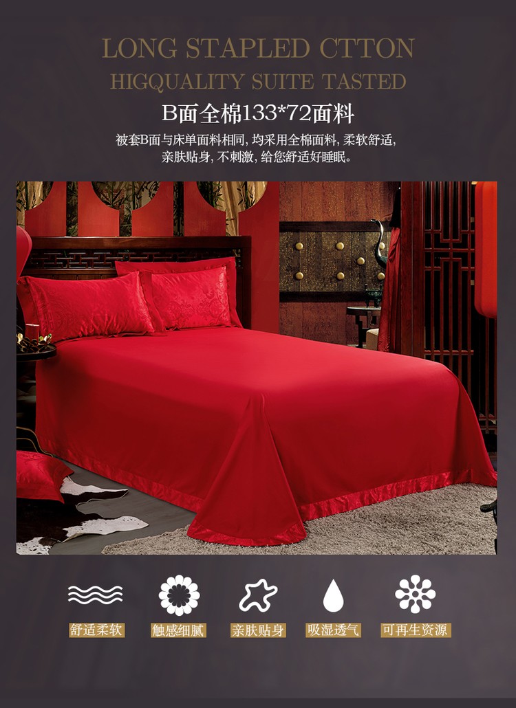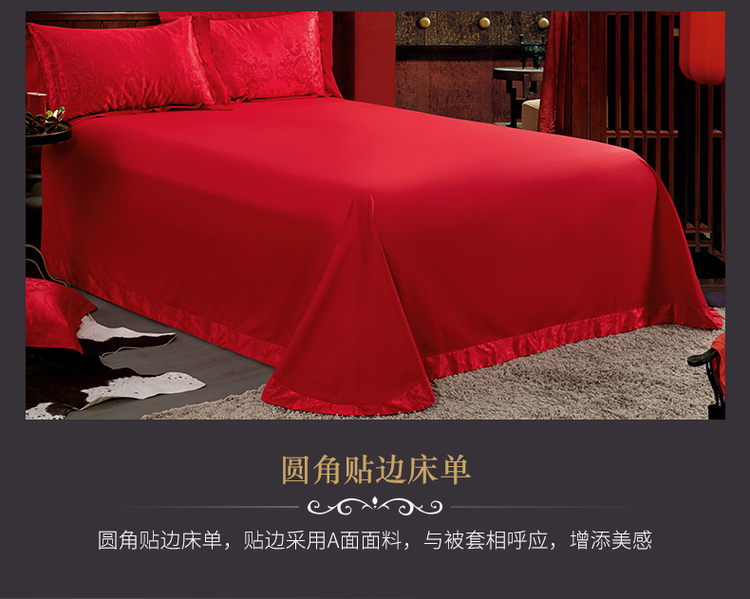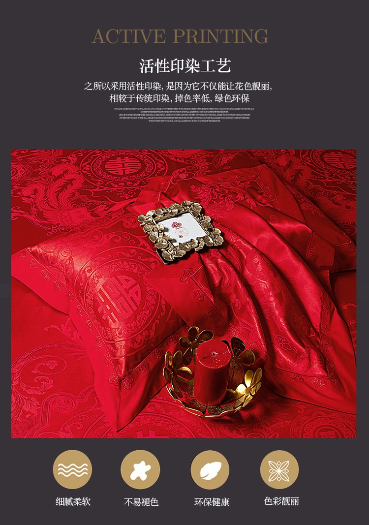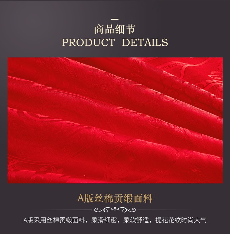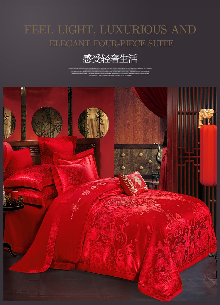 柔觉家纺 天丝刺绣贡缎提花全棉四件套,雅普诺-红灰
