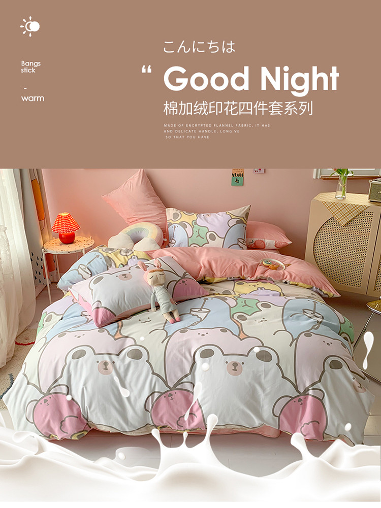 商品名称:澳萝拉 2020新款棉加绒印花四件套 熊熊乐园