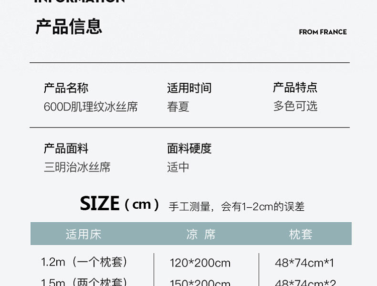 商品名称:(总)印季 2023新款600D纯色肌理纹4D三明治冰丝席