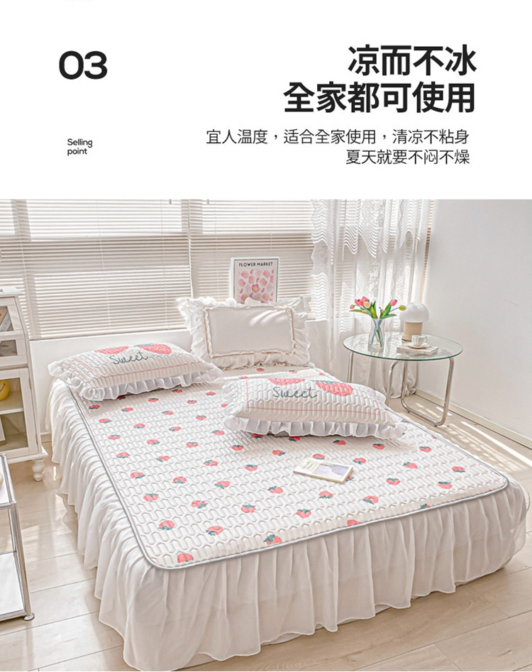 佰亿莱 2024新款韩版床裙款乳胶凉席三件套 小草莓