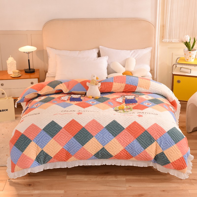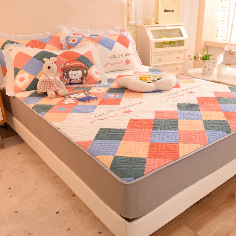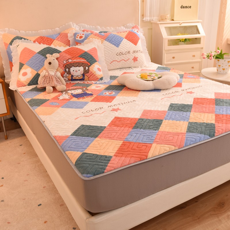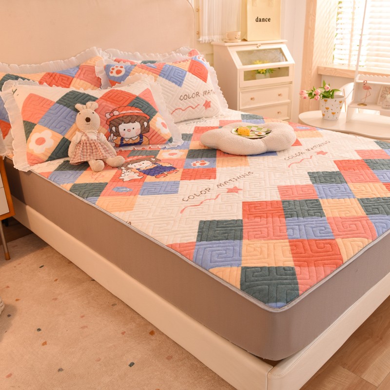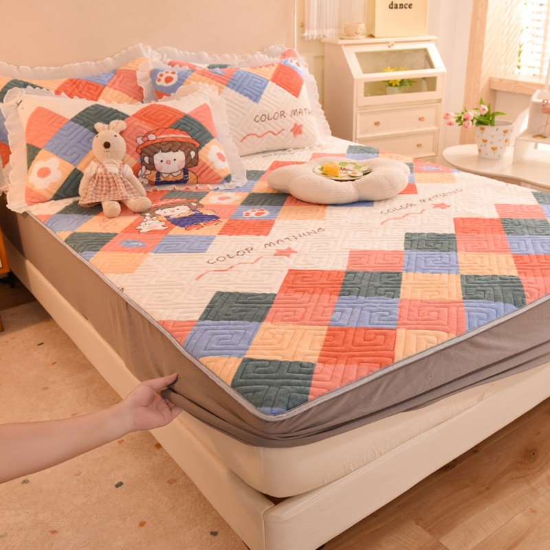 甜之梦 2025新款牛奶绒印花夹棉花边系列单品床笠 校园女孩