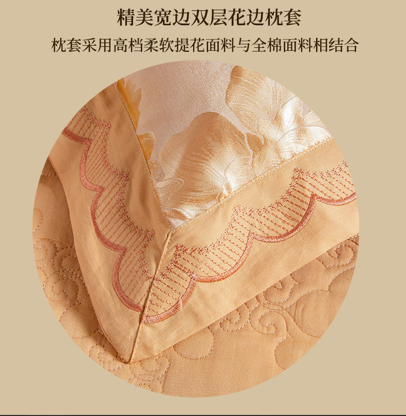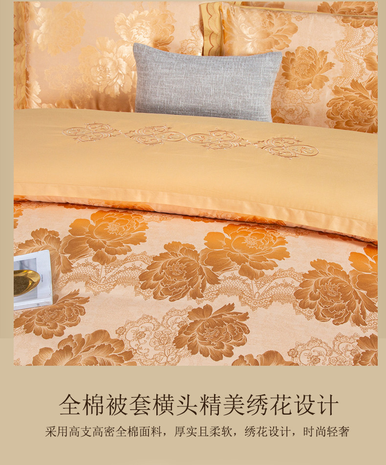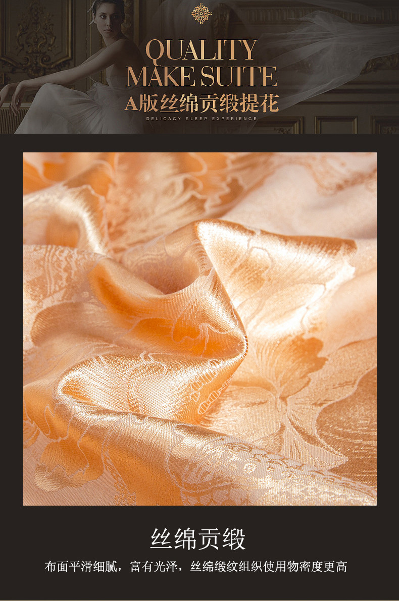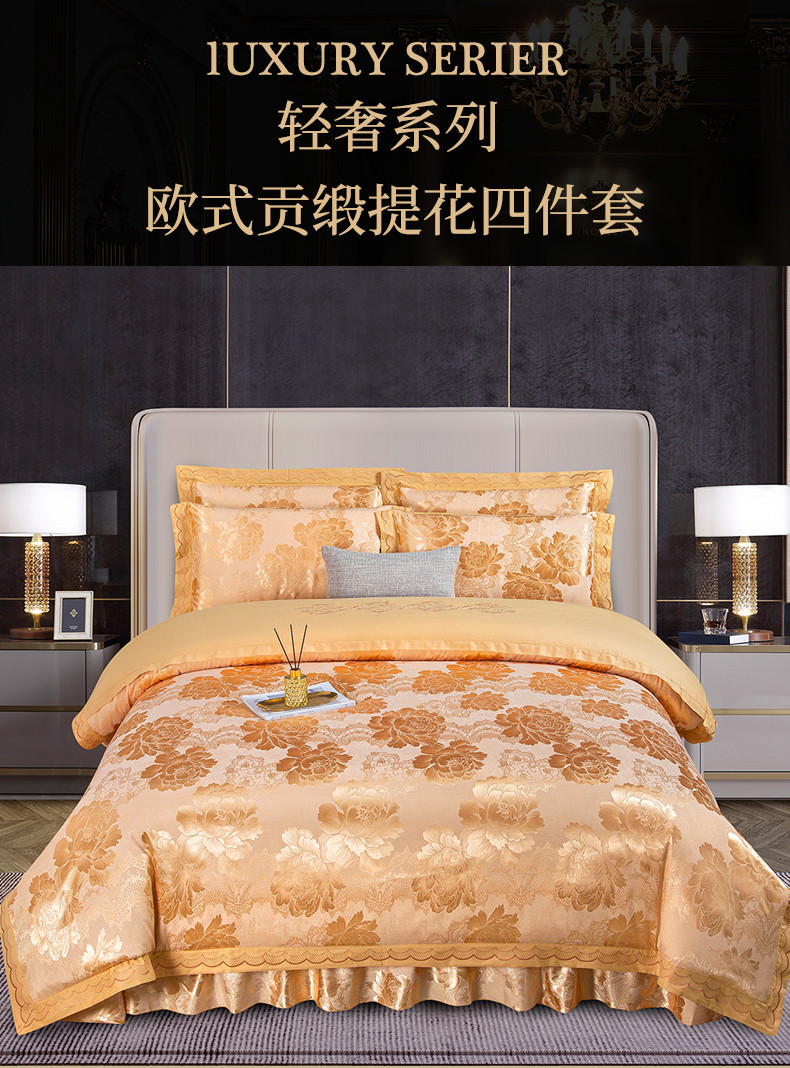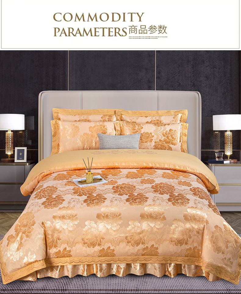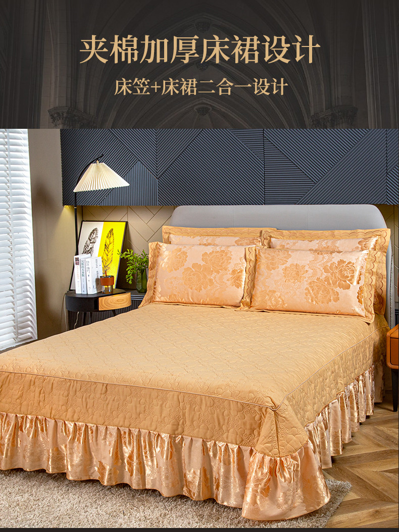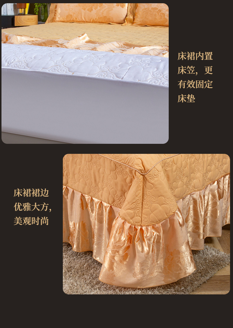 商品名称:福丽莱家纺 2023新款贡缎提花床裙四件套(夹棉)千娇百媚-金色