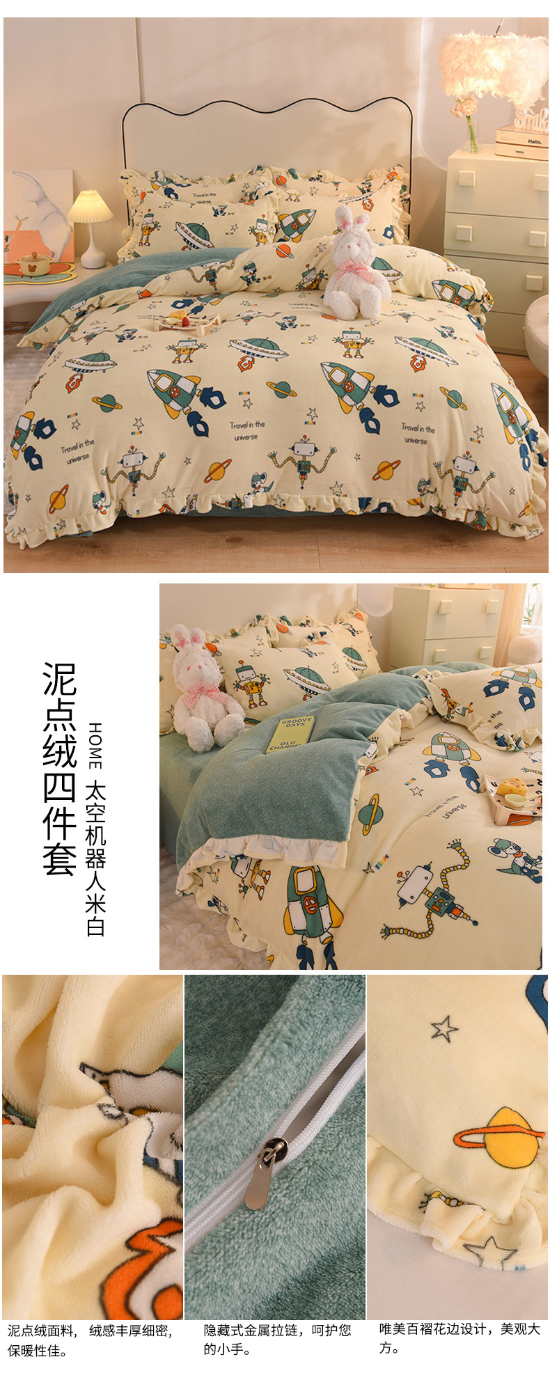 当前位置: 91家纺网 > 商品网购 > 床品套件 > 四件套 > 磨绒四件套 > 甜之梦家纺 2025新款泥点绒印花四件套(任何尺寸都可定做) 太空机器人米白