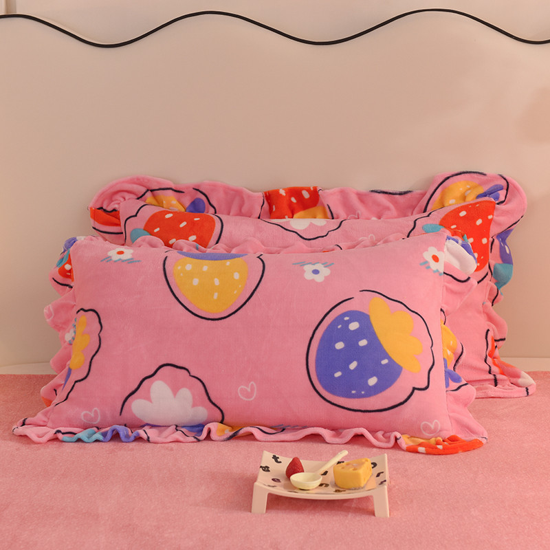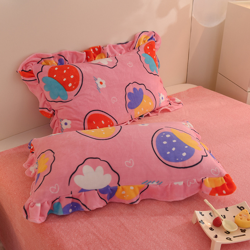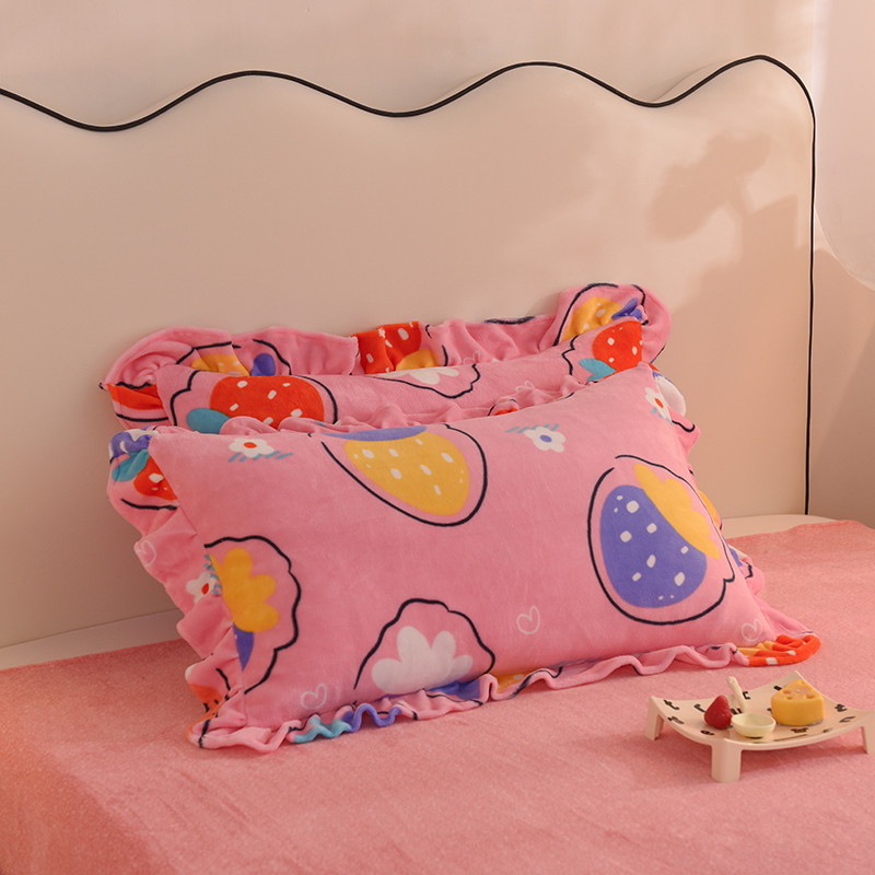 商品名称:甜之梦家纺 2025新款韩版泥点绒单品枕套 粉红草莓