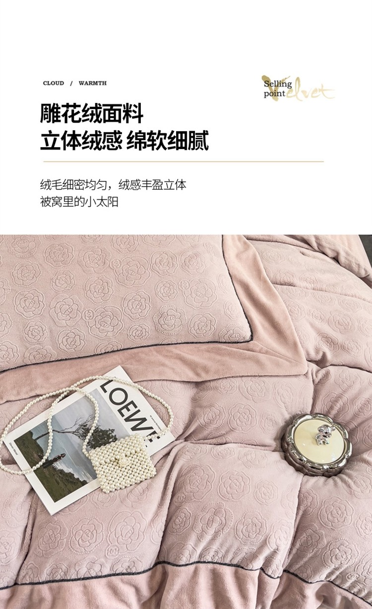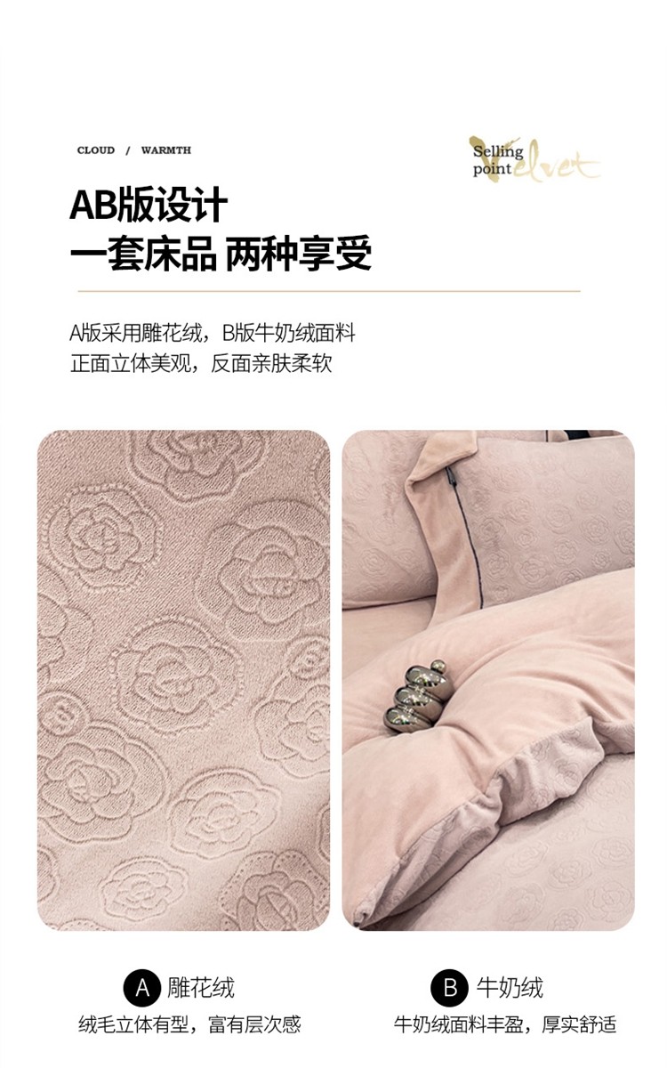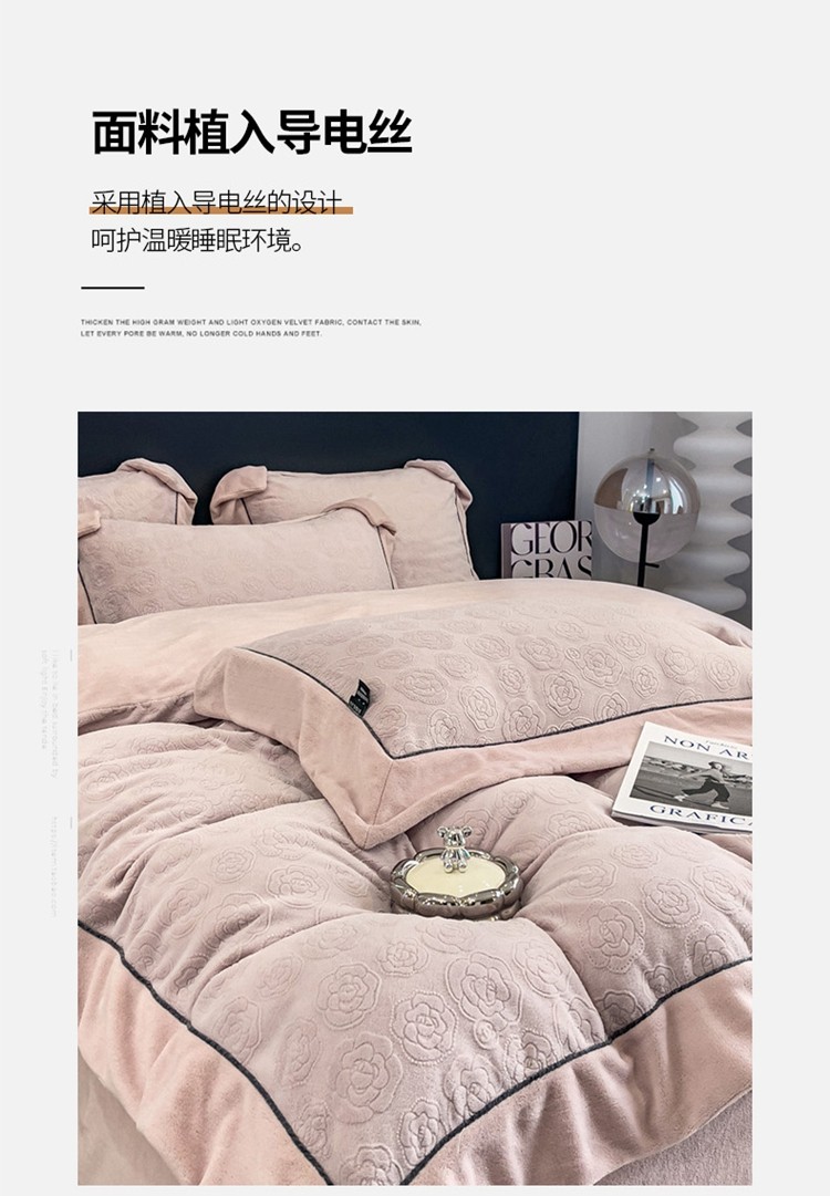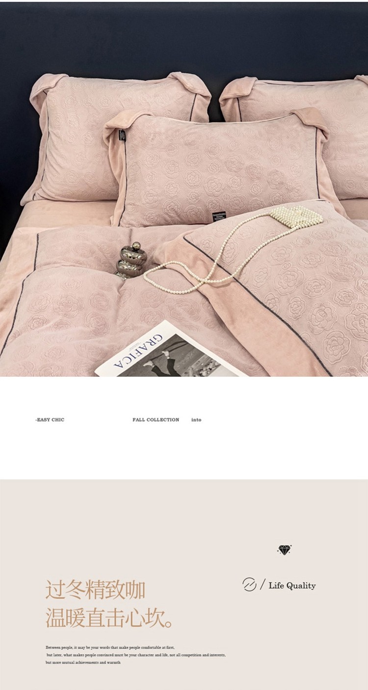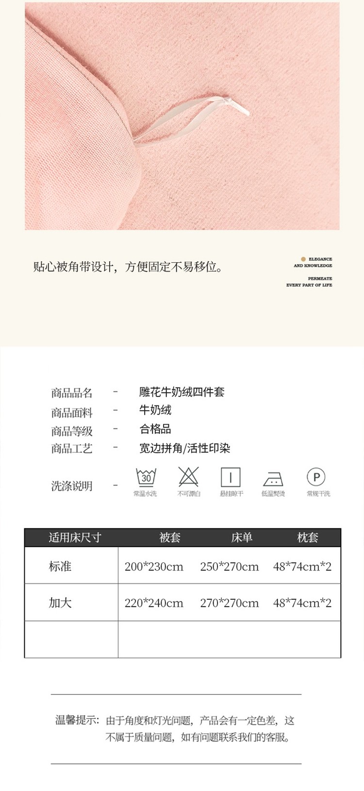 商品名称:2025新款牛奶绒雕花四件套-小香 豆沙色