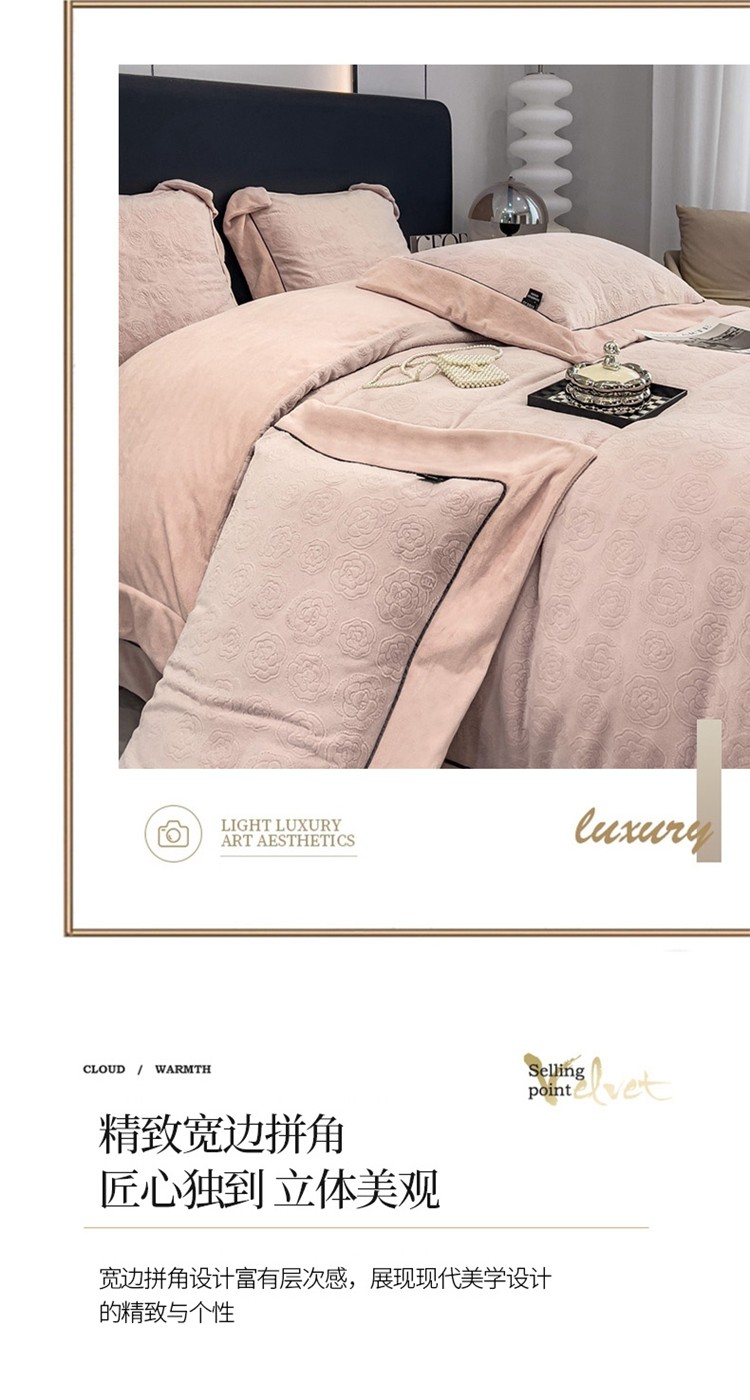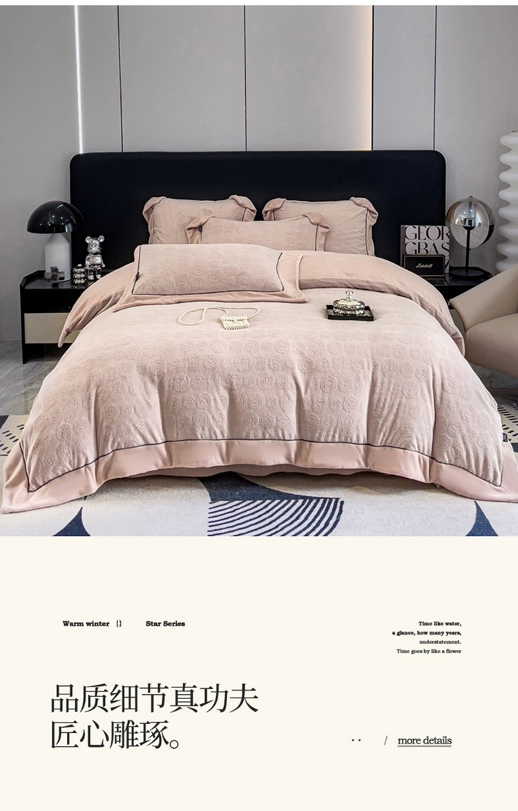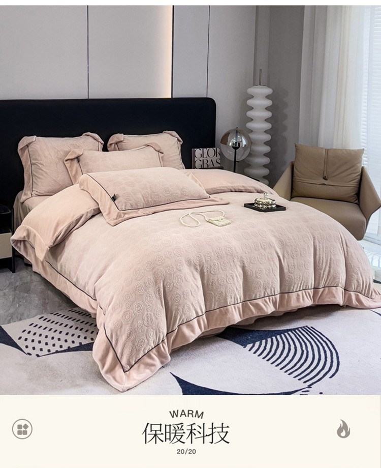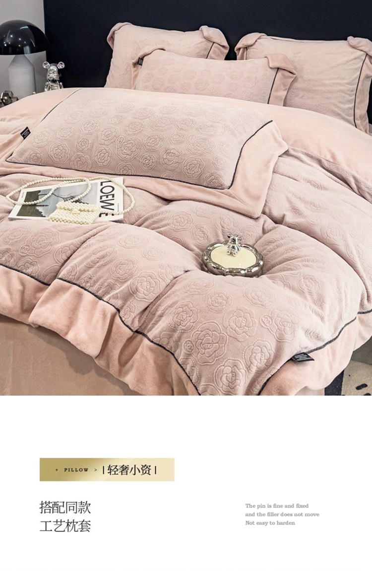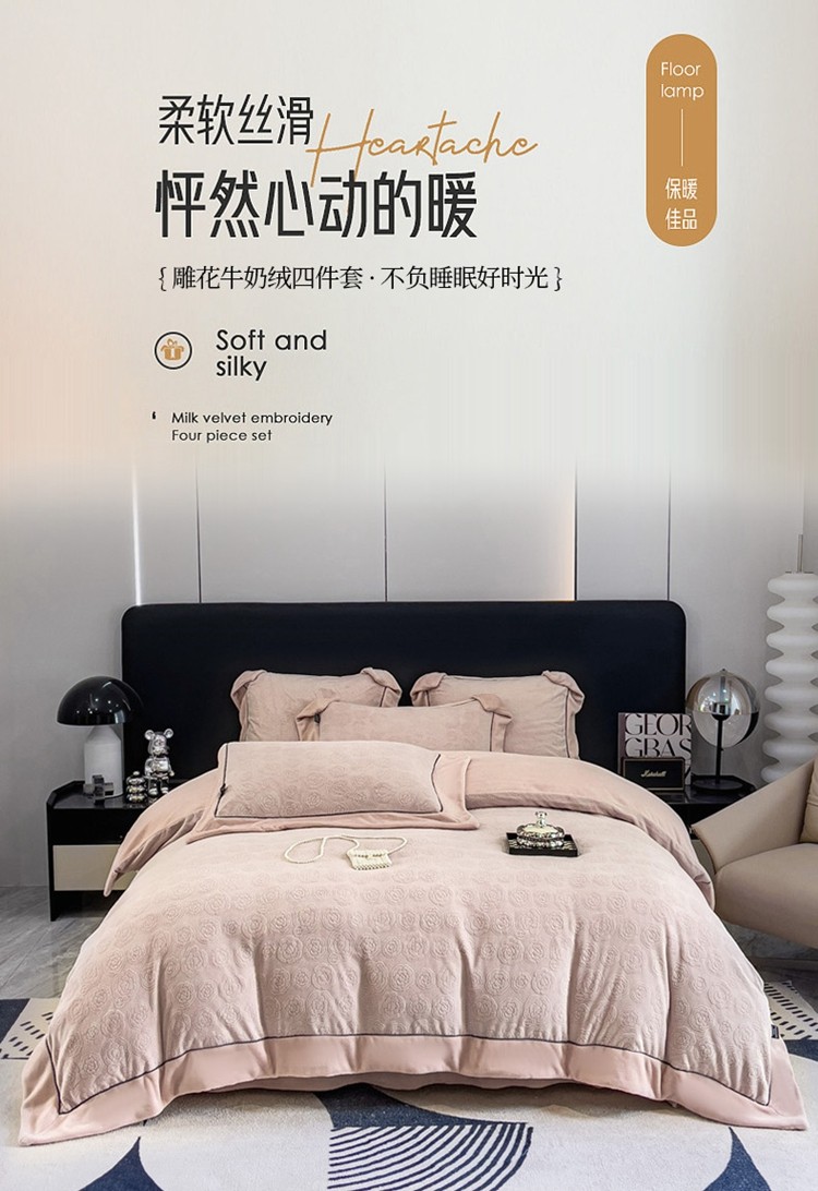 2025新款牛奶绒雕花四件套-小香 豆沙色