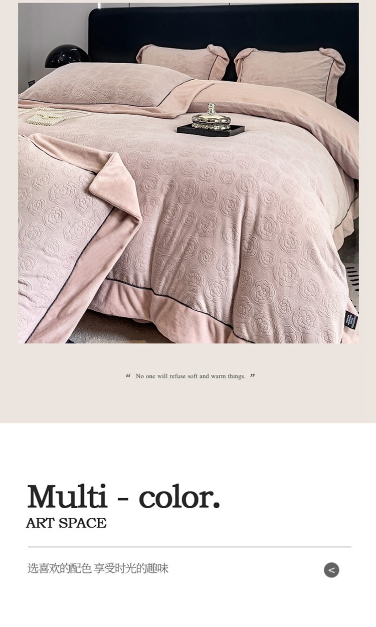 (总) 品家居 2025新款5D雕花牛奶绒四件套-心动玫瑰,粉拼灰,黄拼灰,蓝拼灰