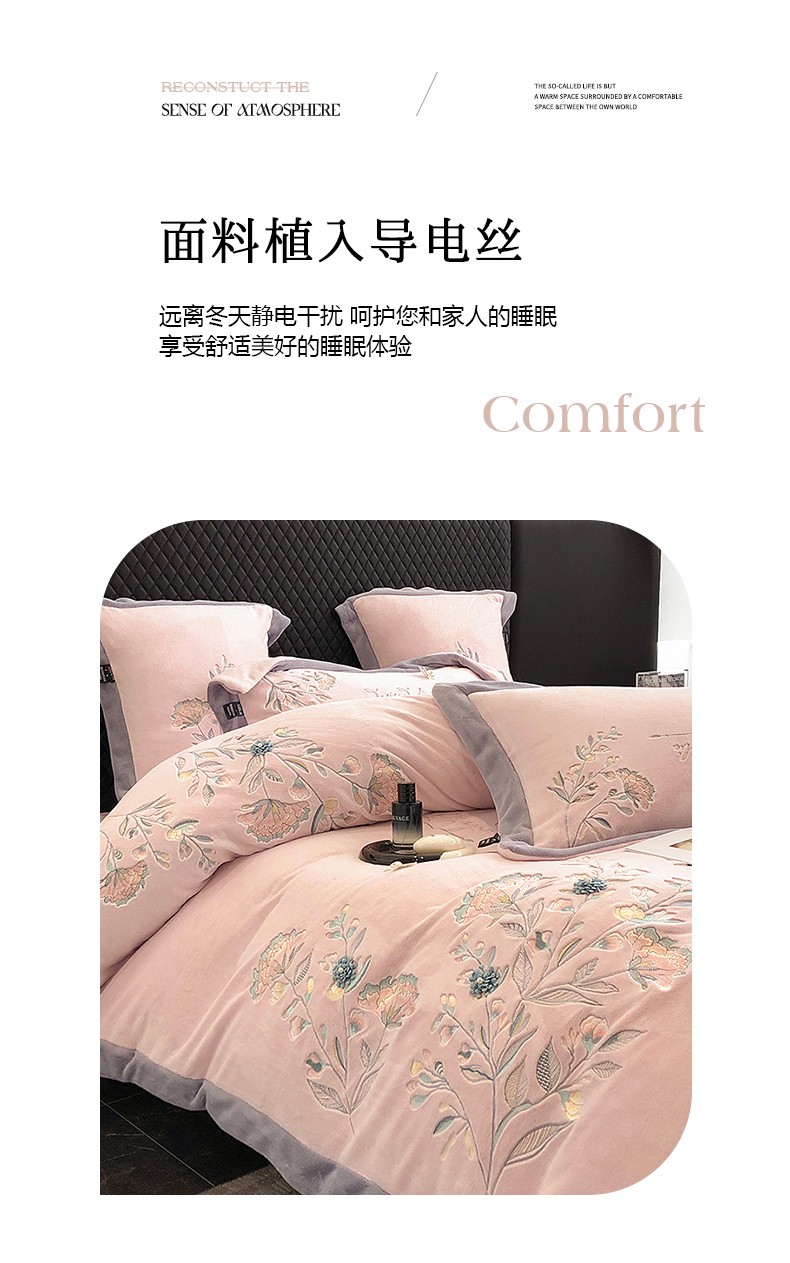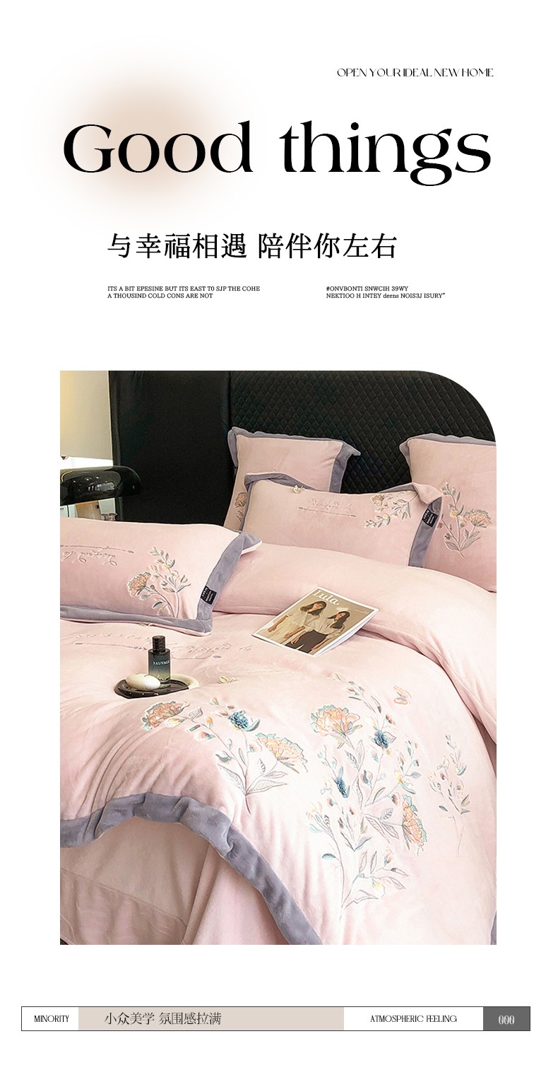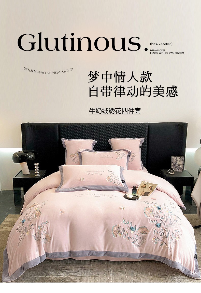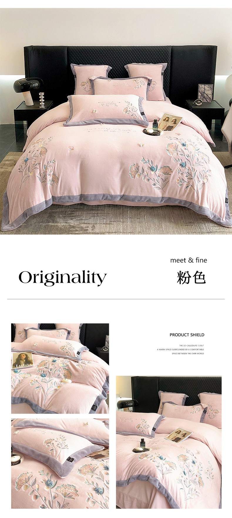 (总) 品家居 2025新款牛奶绒绣花四件套-蝶舞恋花