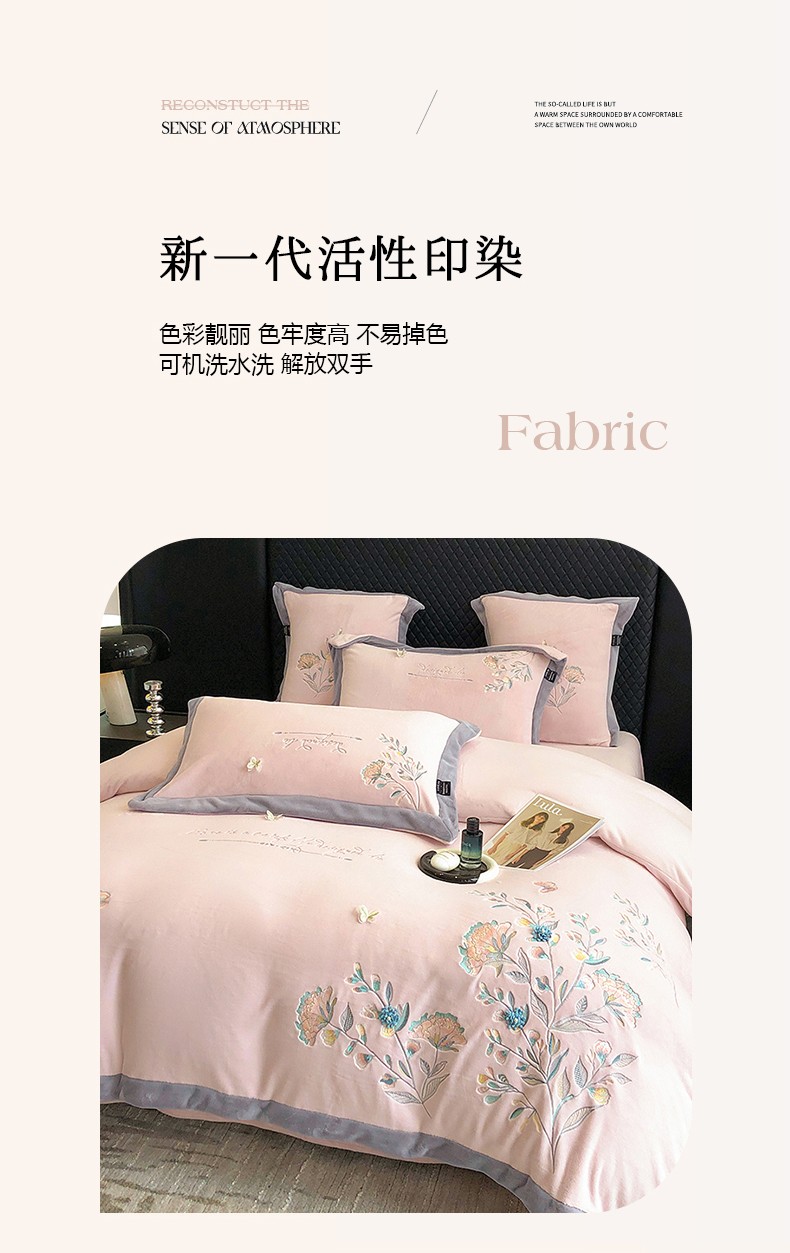 (总)品家居2021新款贝拉花园180支全棉澳棉刺绣四件套,贝拉花园-粉,贝拉花园-蓝