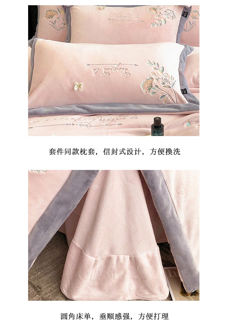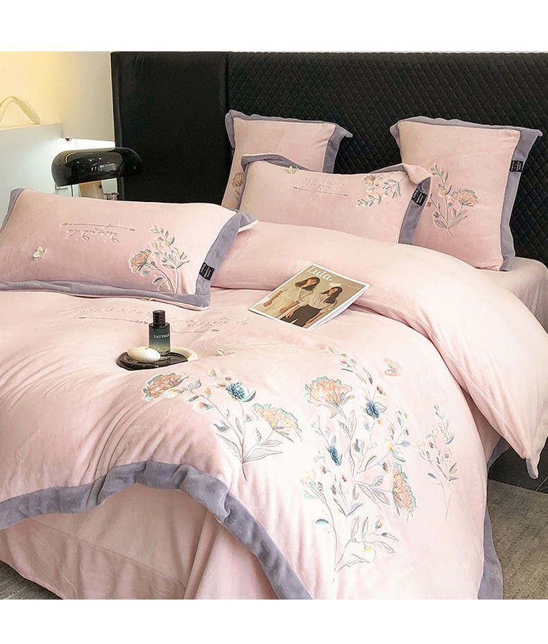 (总)品家居 2025新款AB版高克重兔绒牛奶绒四件套-花颂,花颂-粉色,花颂-灰色