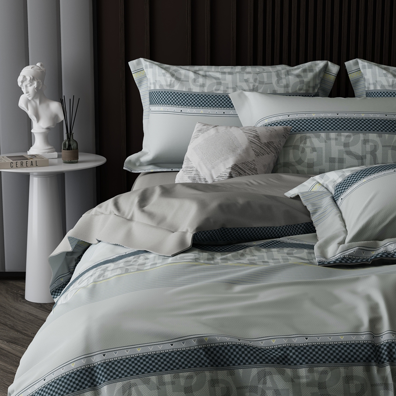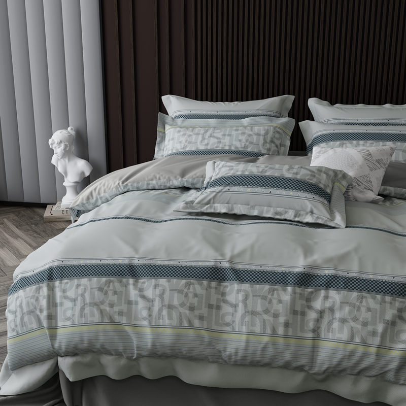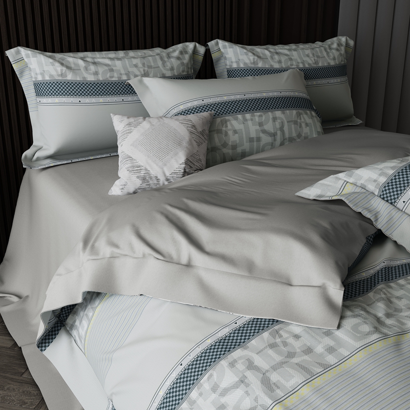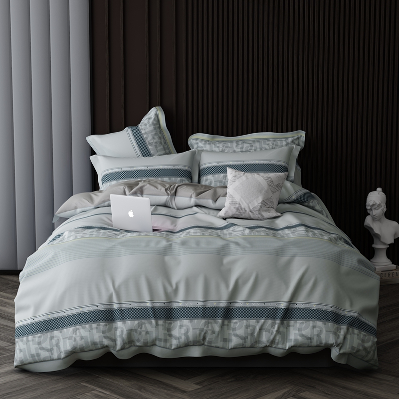 栩裕纺织 2024新款柔柔棉数码印花四件套 洛梵-灰