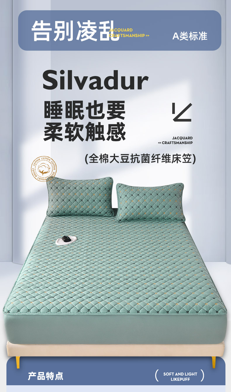 • 91家纺网 家纺一手货源 找家纺 好眠好梦家纺 2024新款全棉夹棉床笠-寻觅 松绿