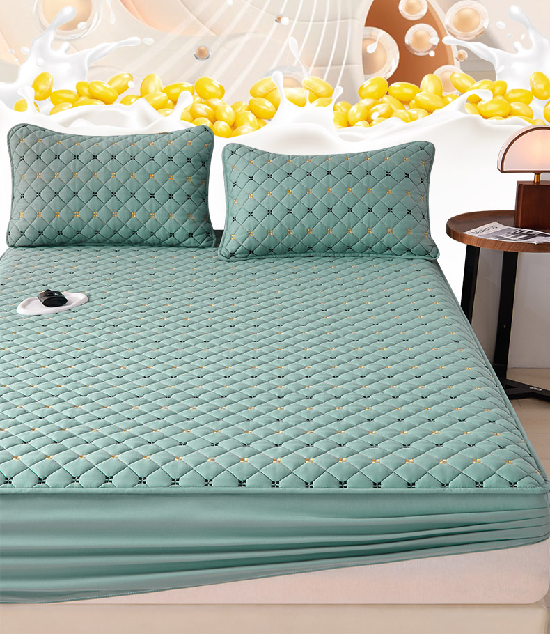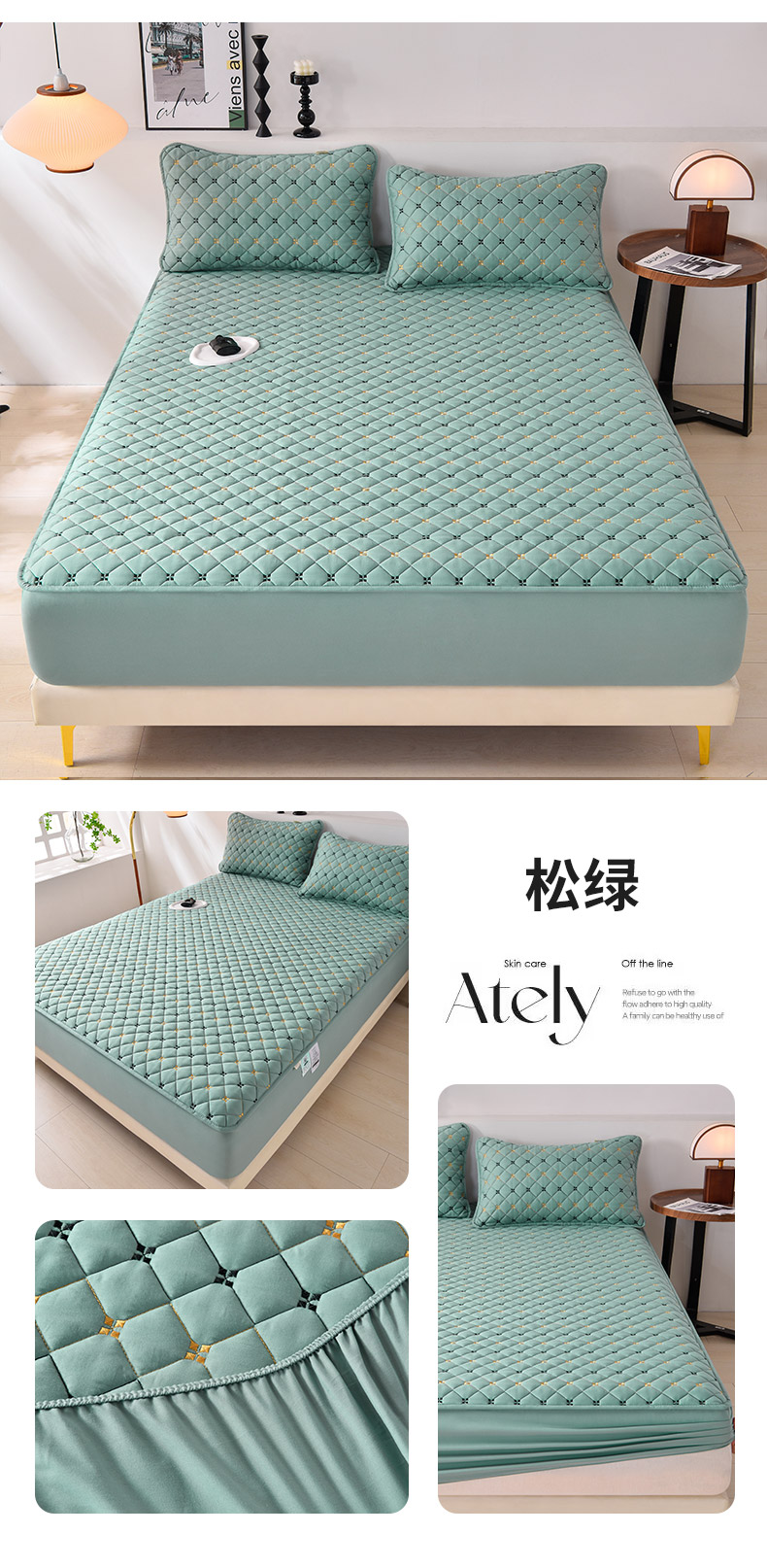好眠好梦家纺 2024新款全棉夹棉床笠-寻觅 松绿