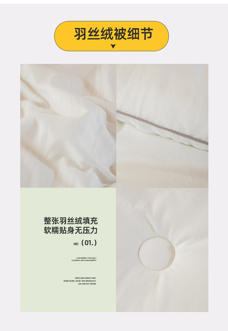 全棉六件套 被套尺寸:150*200CM*1 床单尺寸:160*230CM*1 枕套尺寸:48*74CM *1 羽丝绒被芯尺寸:150*200CM*1(3斤)