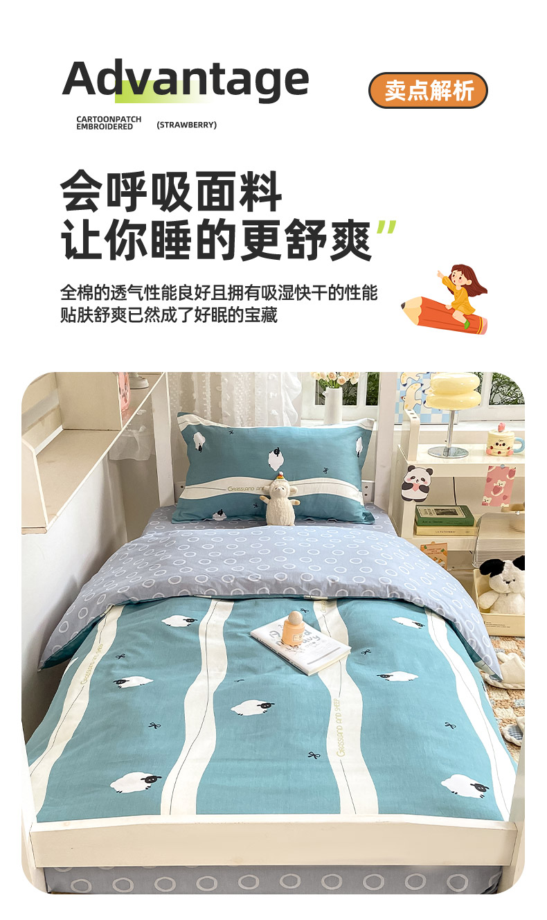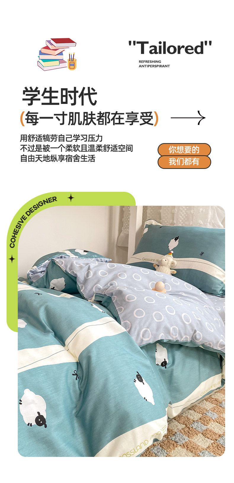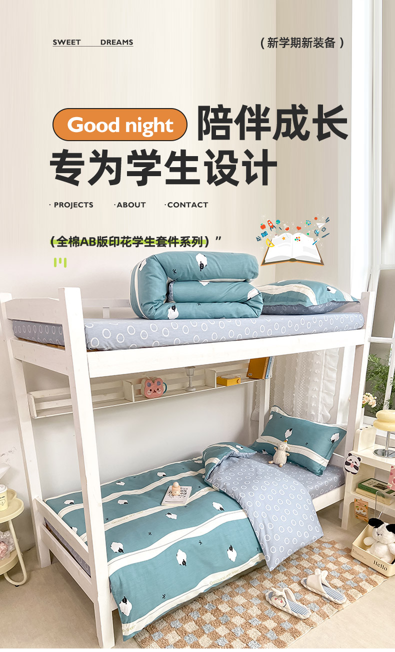 好眠好梦家纺 2024新款全棉学生大礼包六件套 羊羊羊-蓝