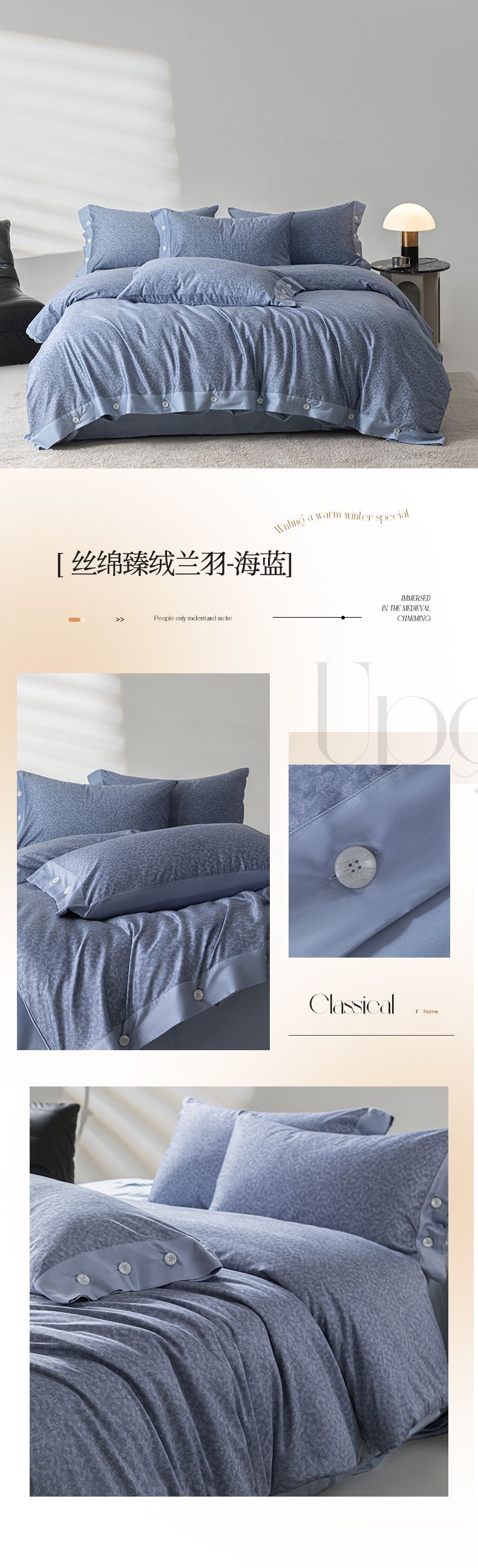 商品名称:(总)栩裕纺织 2024新款丝棉臻绒磨毛数码印花四件套--兰羽系列