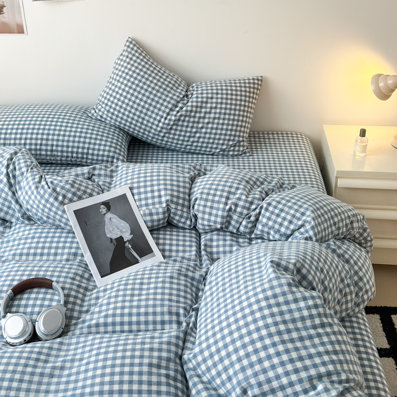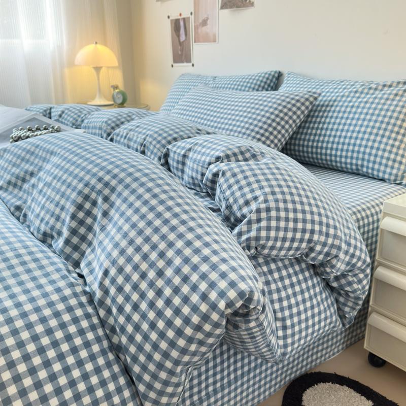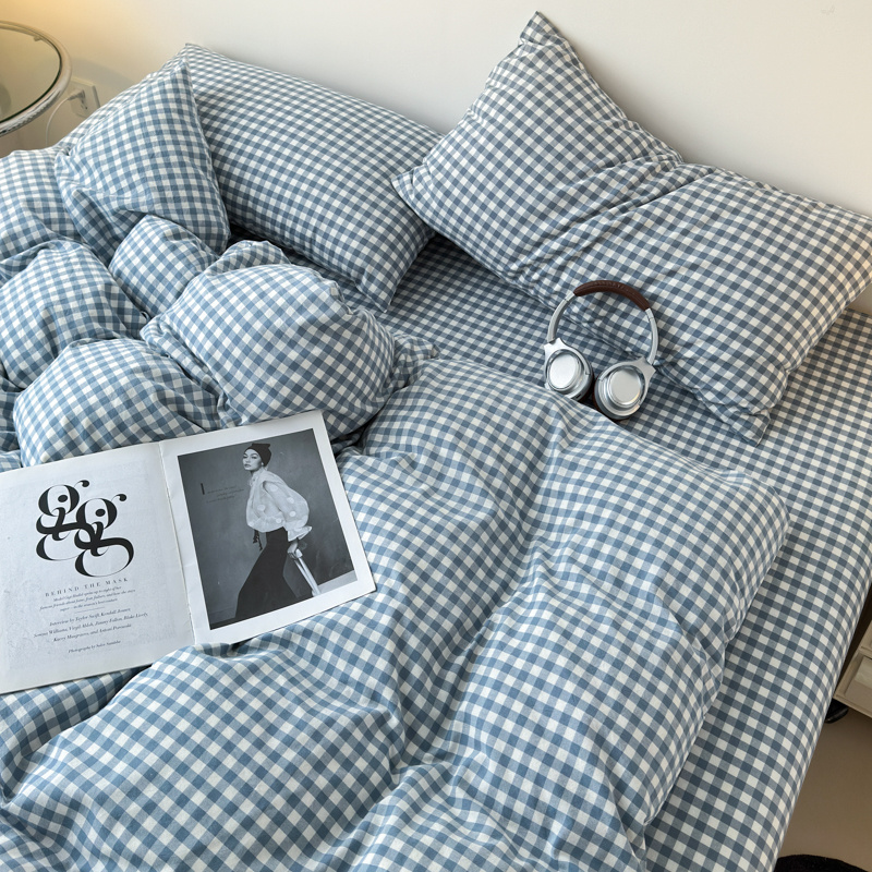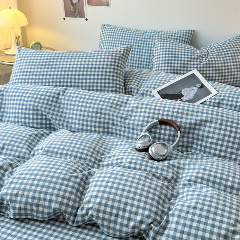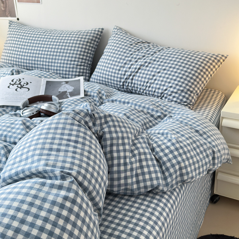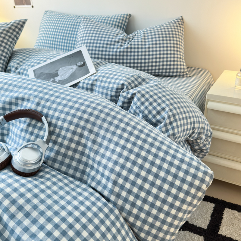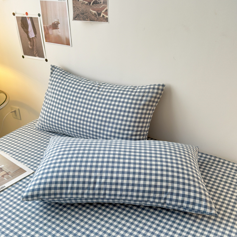 清雅福 2025新款全棉A类水洗棉单枕套 蓝小格