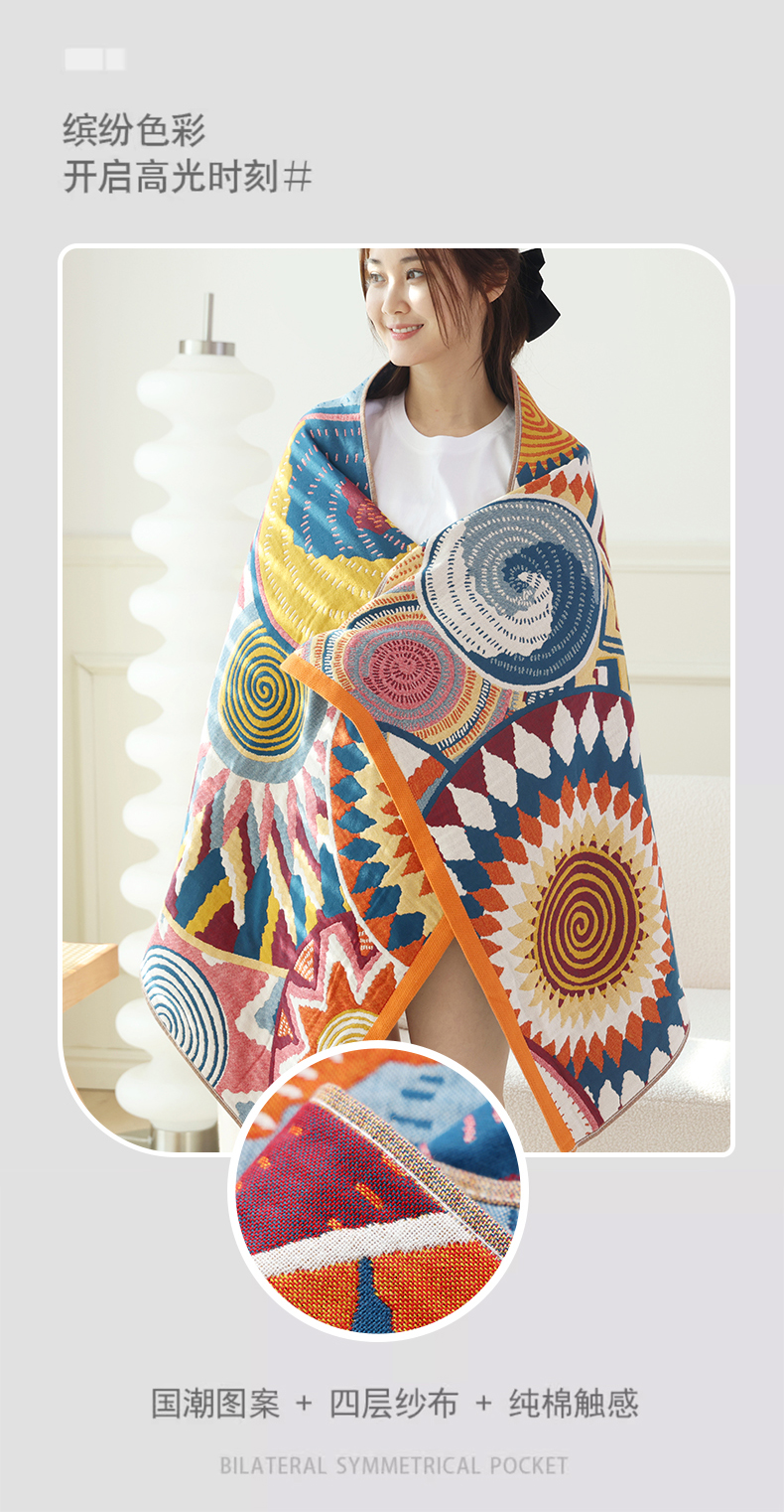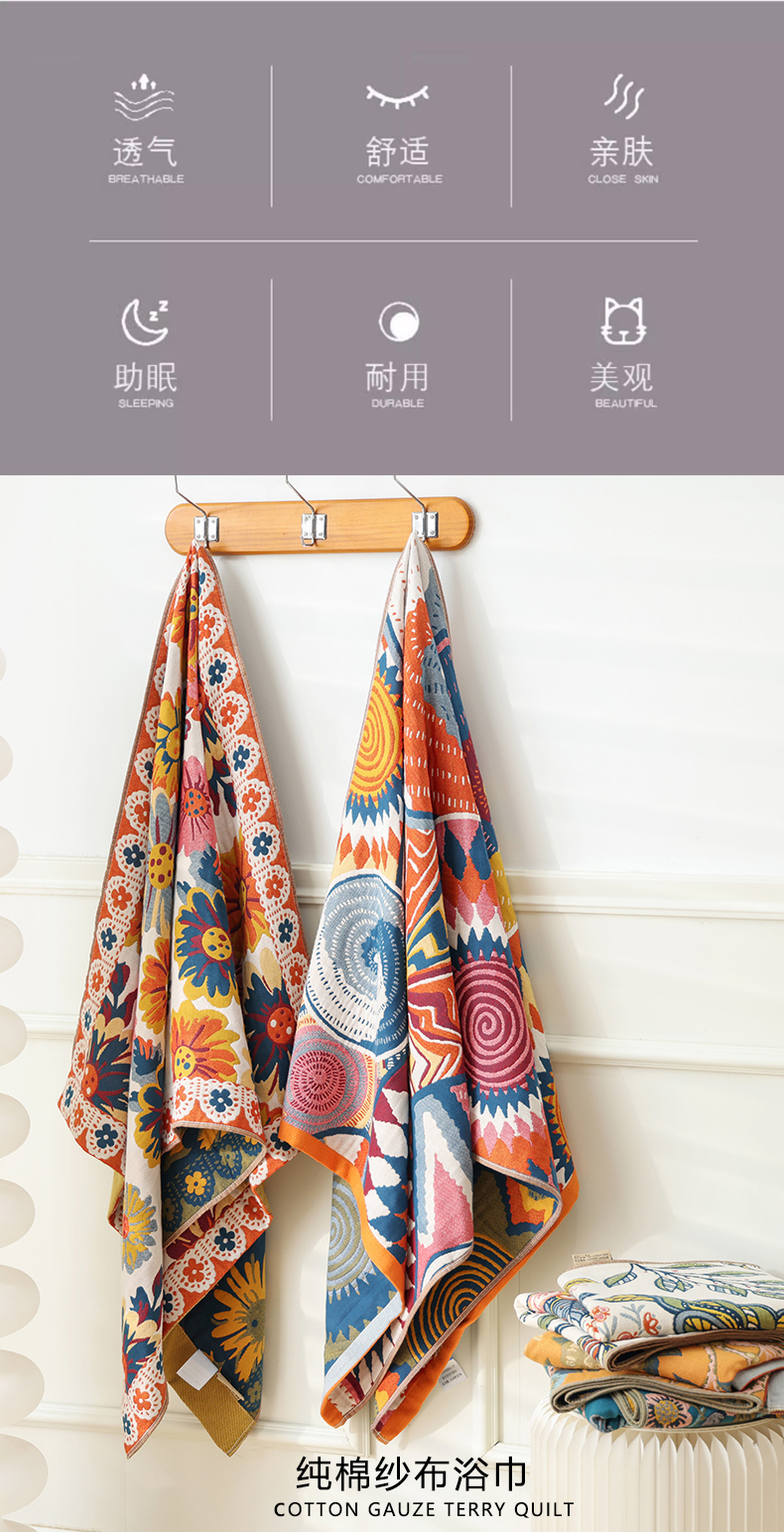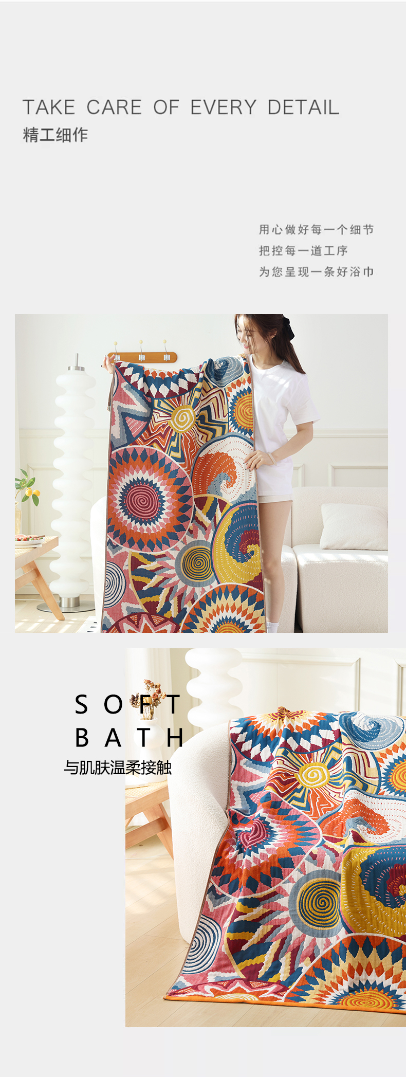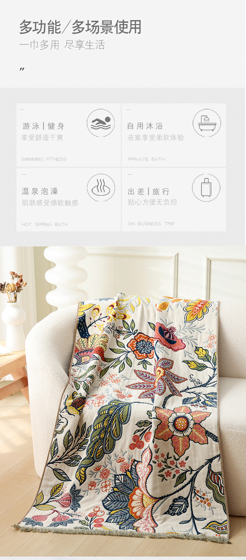 当前位置: 91家纺网 > 商品网购 > 床品套件 > 四件套 > 全棉普通四件套 > 朴尔2025年新品国潮风加大加厚全棉六层纱布浴巾四件套 花田印象-流苏浴巾