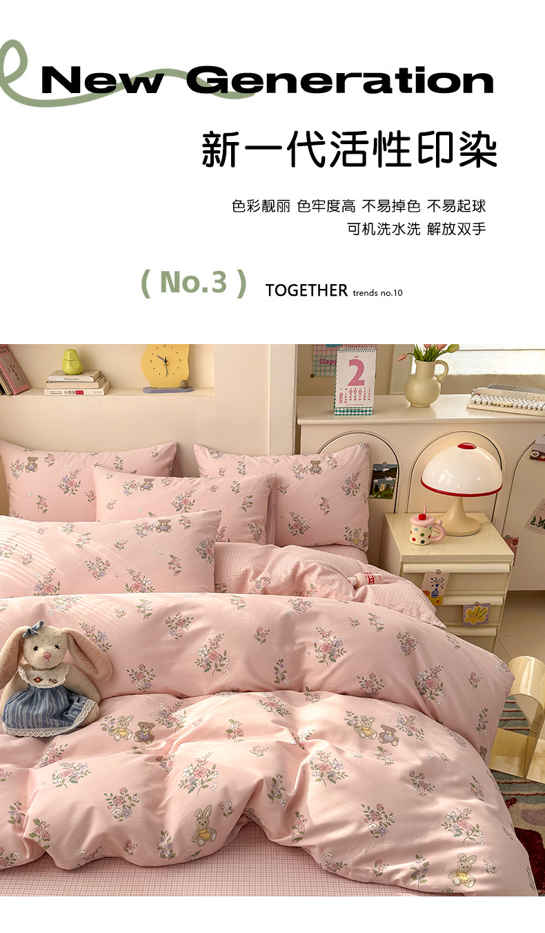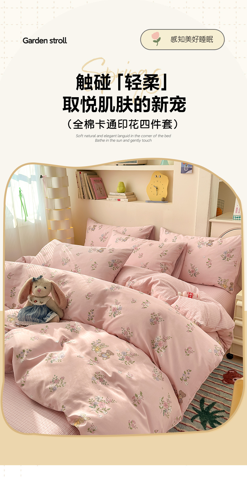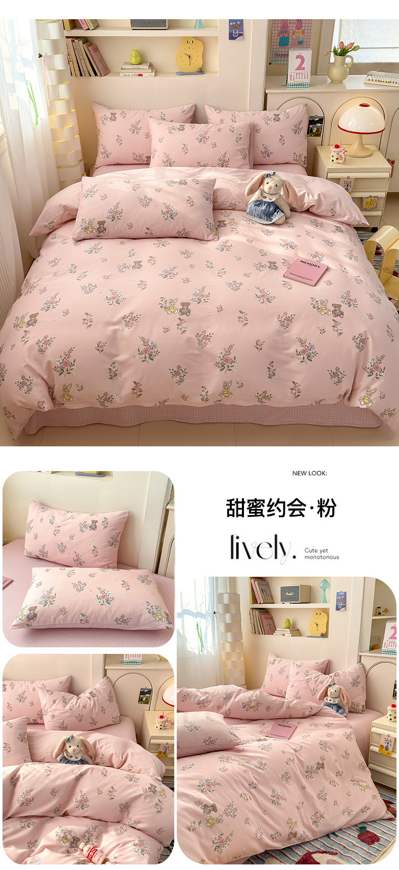 商品名称:清雅福 2025新款13070全棉小清新四件套 甜蜜约会·粉
