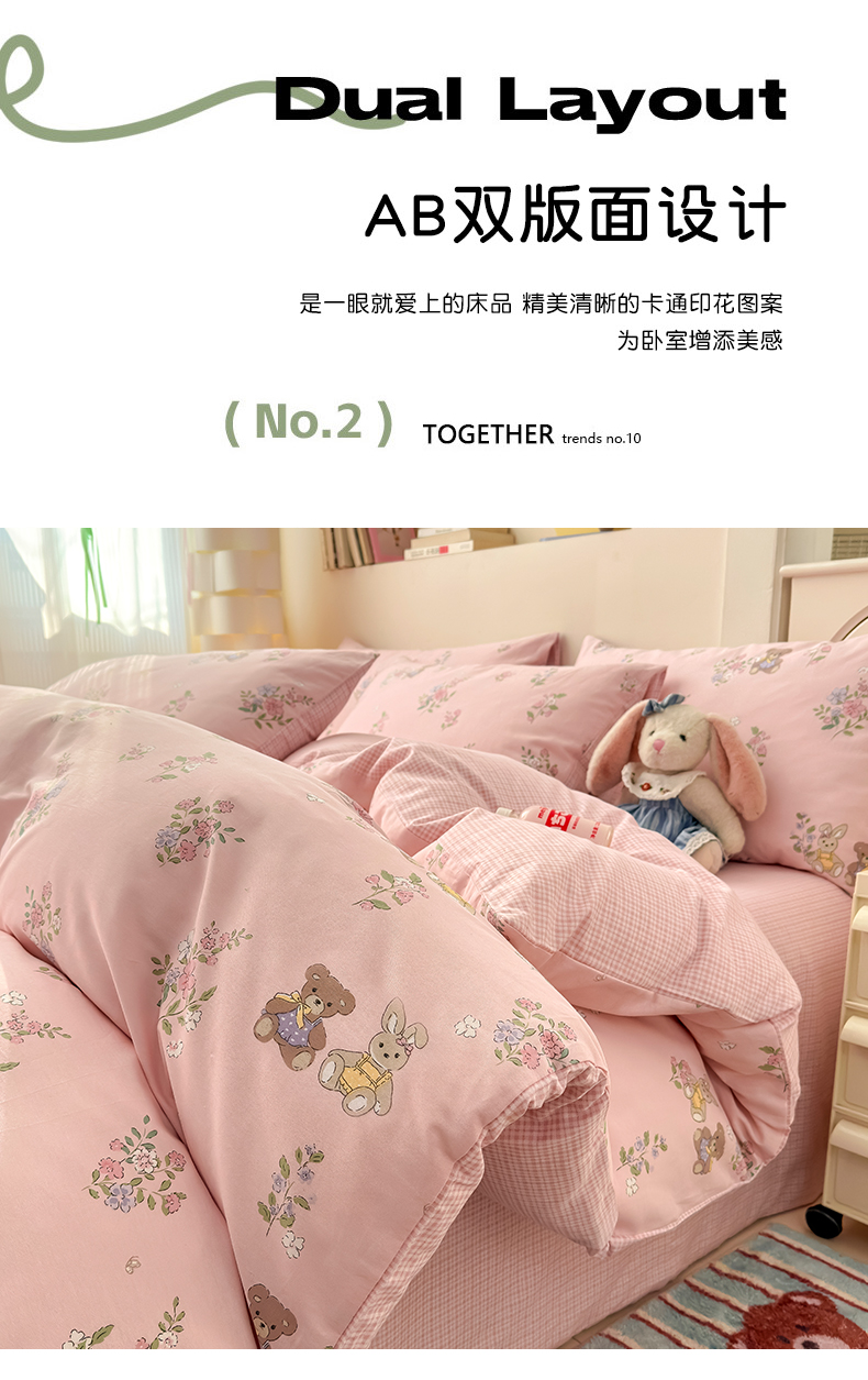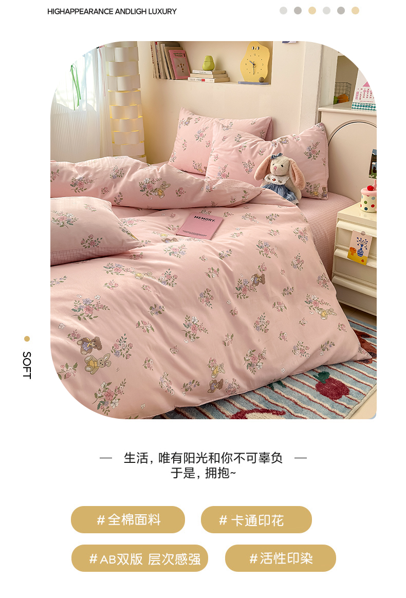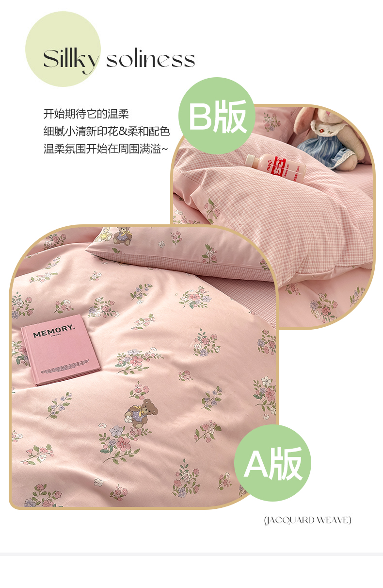 商品名称:清雅福 2025新款13070全棉小清新四件套 甜蜜约会·粉