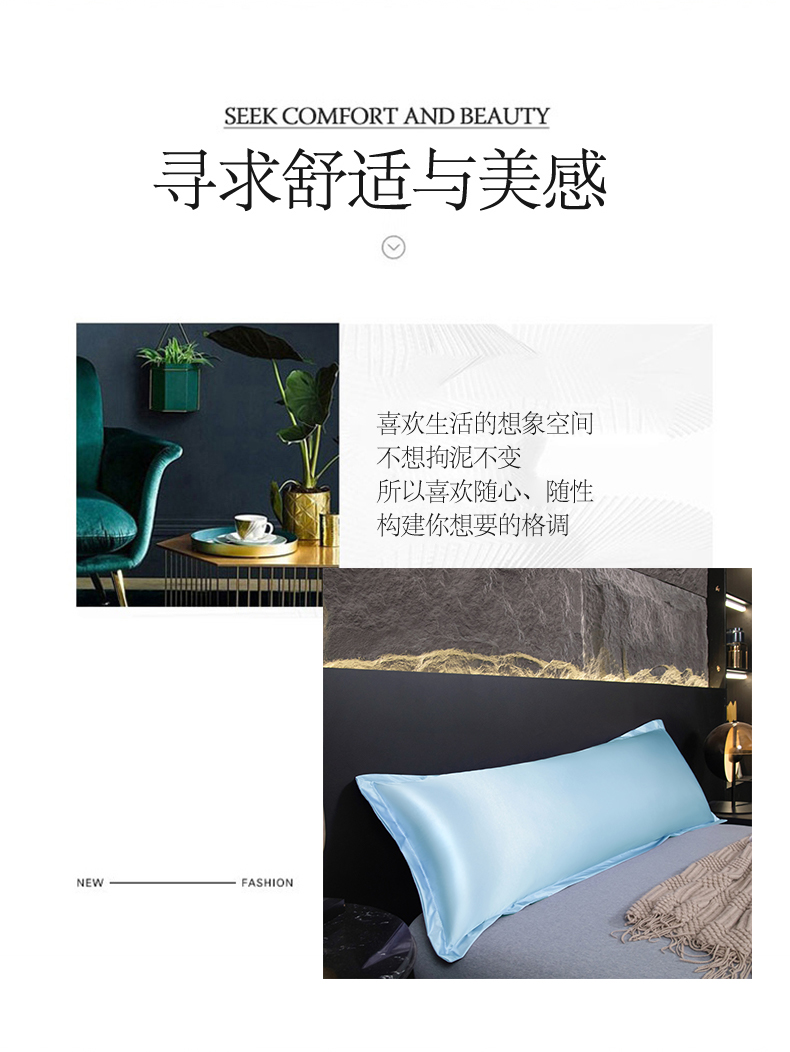 商品名称:圣比熊2025新款防水冰丝纯色双人枕套情侣1.8m枕芯套内胆套 防水款-天空蓝